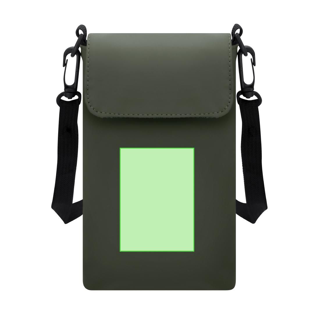 Portatodo fabricado en suave PU. Compartimento principal con cierre de solapa con cierre en velcro. Incluye cinta ajustable plana con doble enganche de mosquetón giratorios.