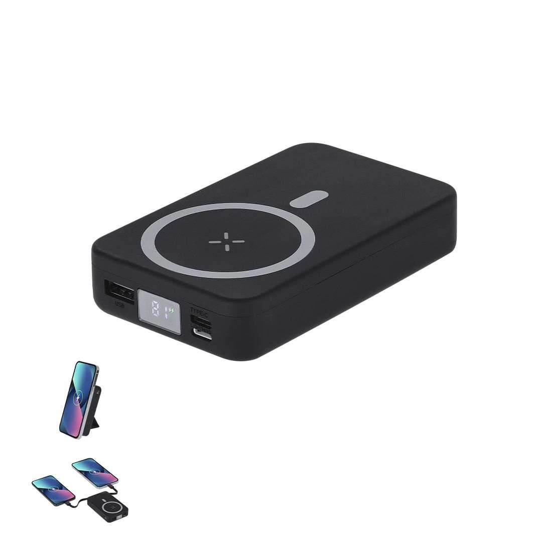 Batería auxiliar externa de 15W gran capacidad de carga 10.000 mAh en ABS Reciclado. Con fijación magnética Magsafe. Cuenta con 1 salida USB,...