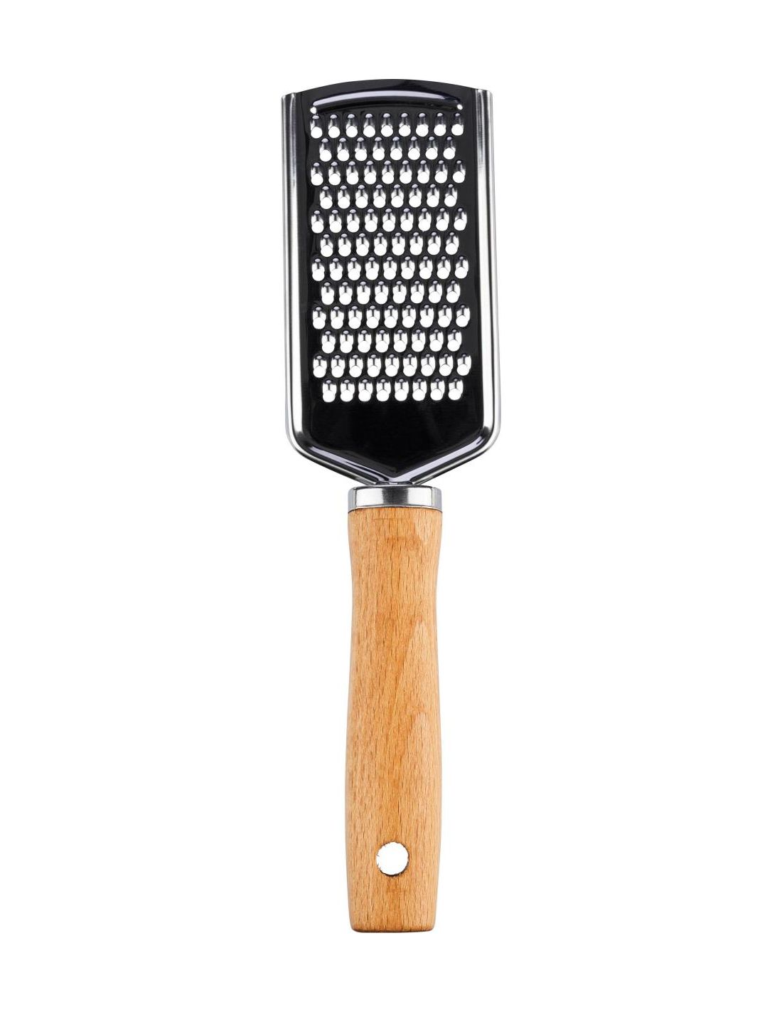Rallador de madera y acero inoxidable (escofina de grado 430 y soporte de grado 410). Cuenta con una abertura en el mango para su fijación. Presentado a granel con papel de seda alrededor de la parte metálica.