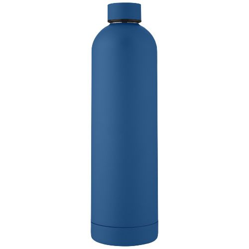 Botella de acero inoxidable con aislamiento al vacío de cobre, un diseño limpio y una gran área de grabación. La construcción con aislamiento de acero inoxidable 18/8 previene la condensación en el interior de la botella, y el acabado pulverizado mate a la moda la hace más duradera. No contiene BPA y se ha probado y homologado según la legislación alemana sobre seguridad alimentaria (LFGB). Contenido de ftalatos probado y homologado según la normativa REACH. Capacidad de 1 L. Se recomienda lavarla a mano. Se presenta en una caja de regalo de cartón reciclado. Mantiene las bebidas calientes durante 12 horas o frías durante 24 horas.