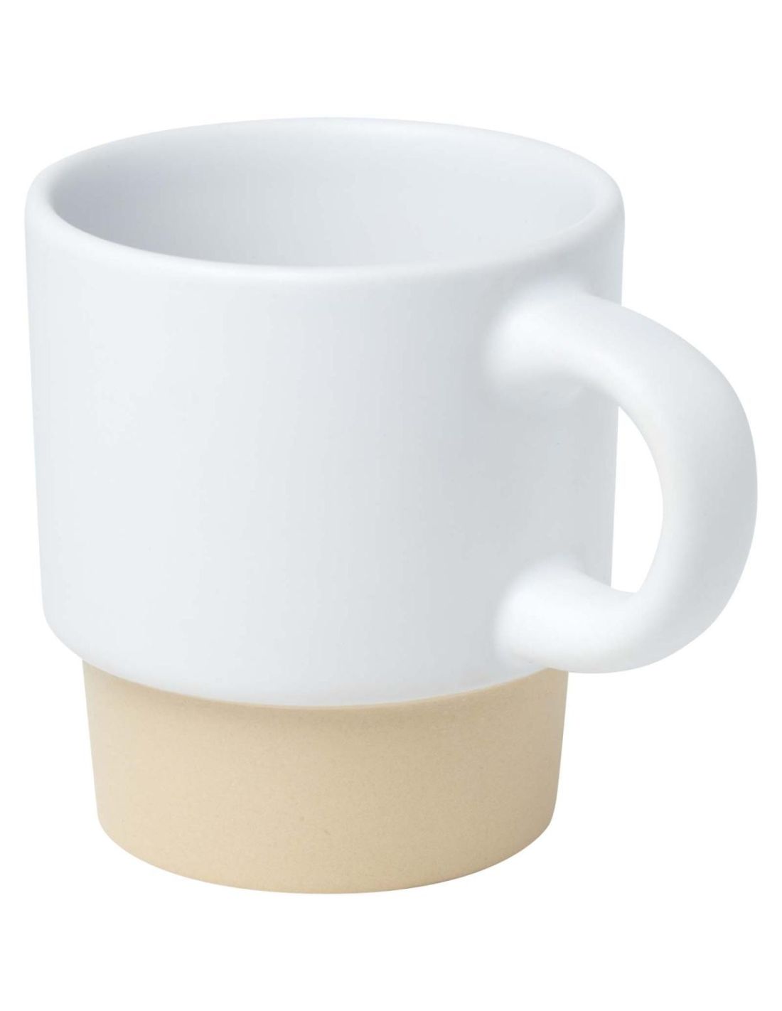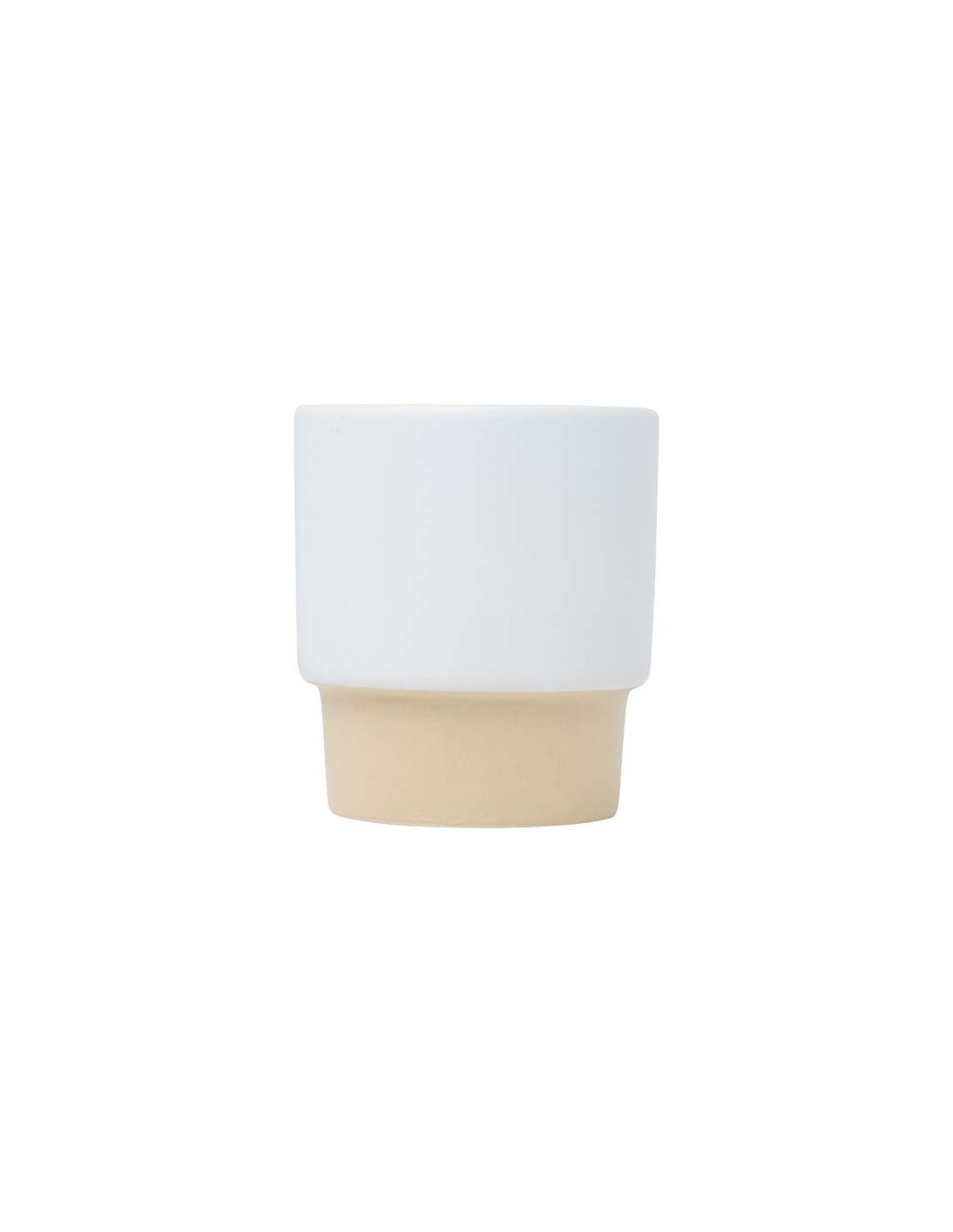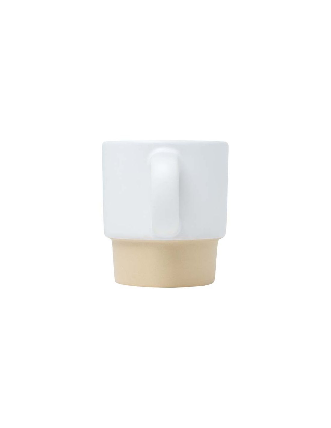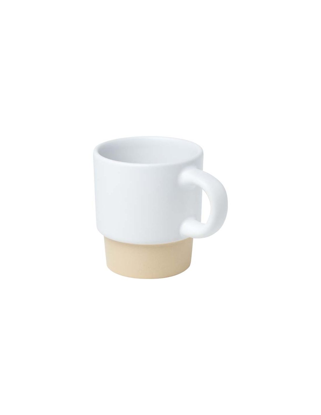 La taza de café expreso \ tiene un diseño apilable que ocupa poco espacio y una capacidad de 130 ml. Acabado mate. Se presenta en una caja de cartón reciclado.