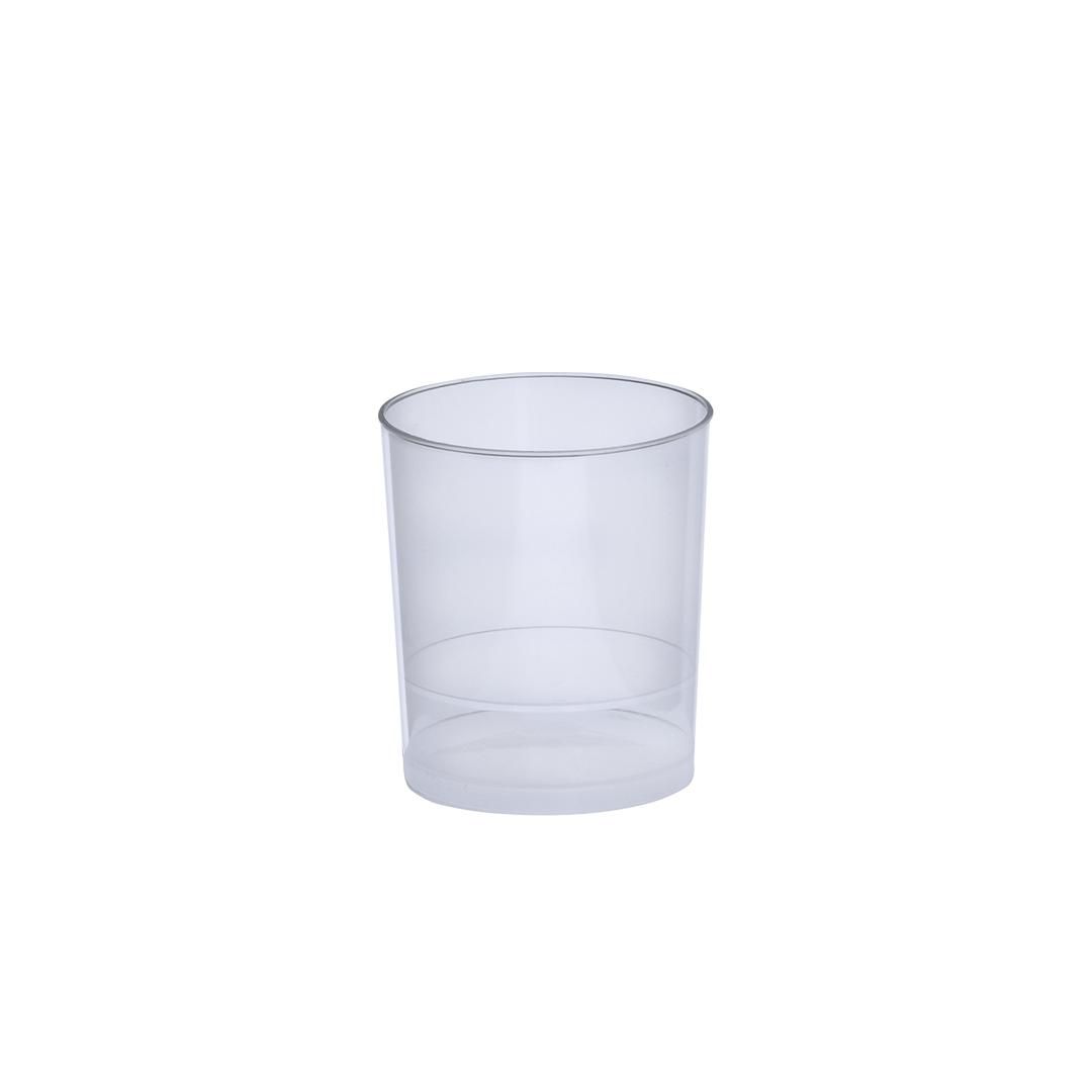 Vaso de 35 ml de capacidad en resistente y flexible material PP. Reutilizable y en acabado translúcido.