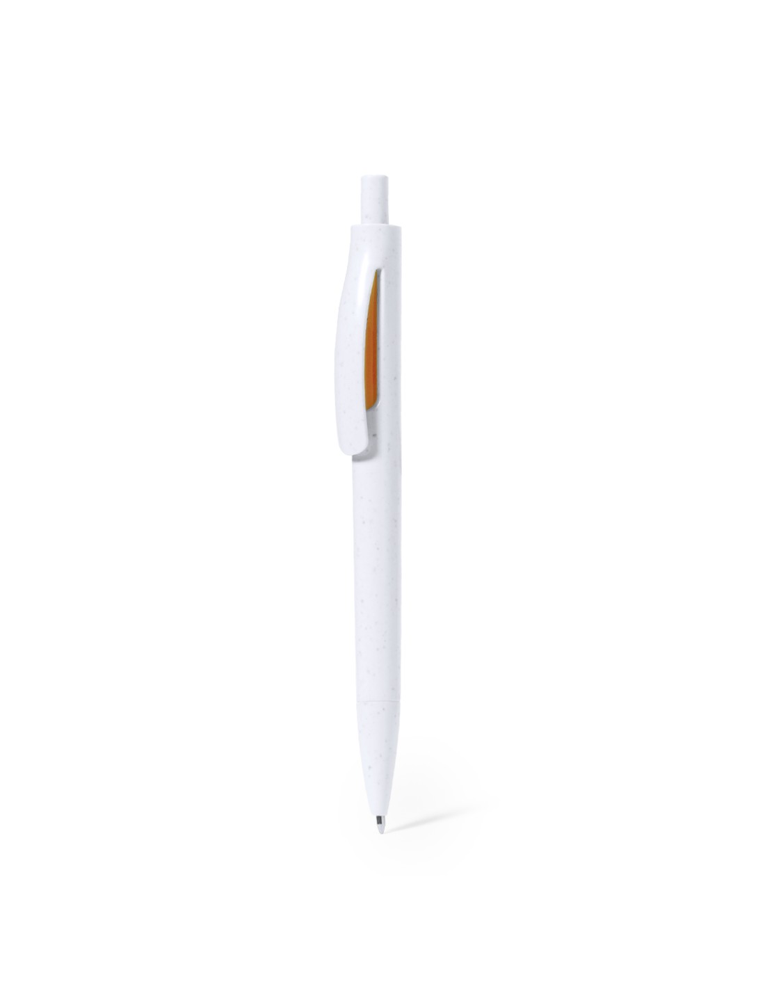 Bolígrafo de mecanismo pulsador fabricado en ABS reciclado. Con accesorios en vivos colores y cuerpo de suave acabado en color blanco sólido....
