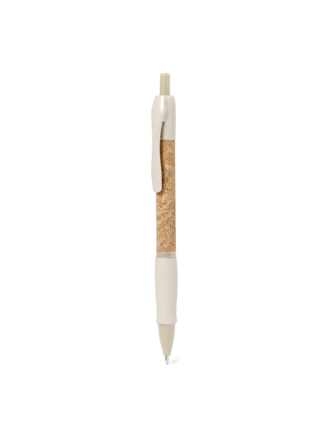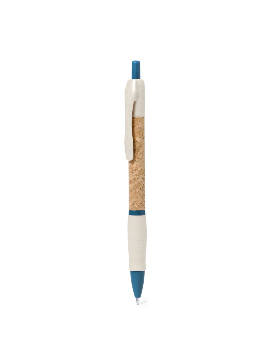 Bolígrafo de mecanismo pulsador con cuerpo en corcho natural. Clip, punta y pulsador en caña de trigo. Disponible en variada gama de colores. Distintivo Wheat Straw en la parte superior del bolígrafo. En tinta azul.Elaborado con elementos vegetales, para así fomentar la utilización de materias primas naturales y reducir las emisiones contaminantes.