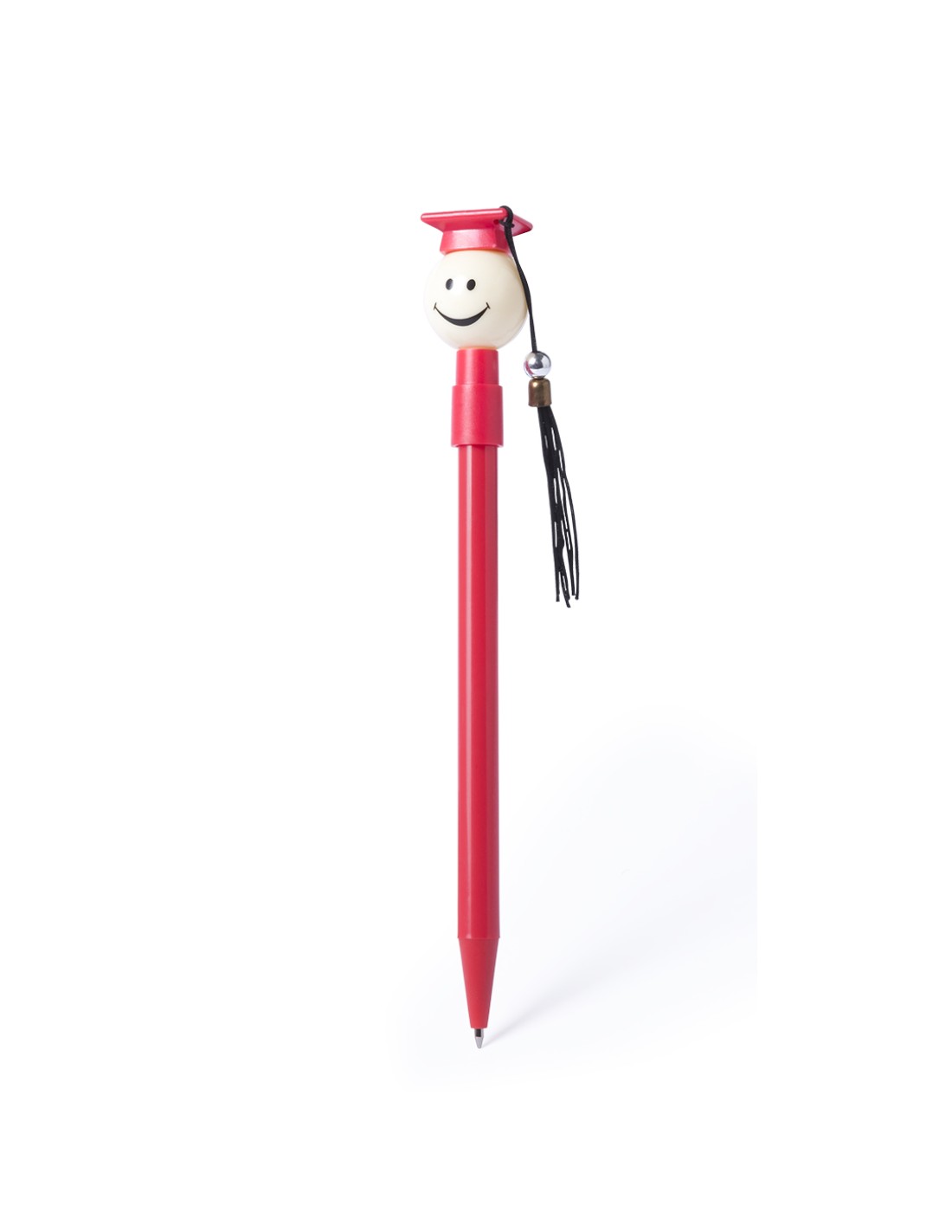Divertido bolígrafo para los graduados en variada gama de vivos colores. Con pom pom de tela y tinta azul.