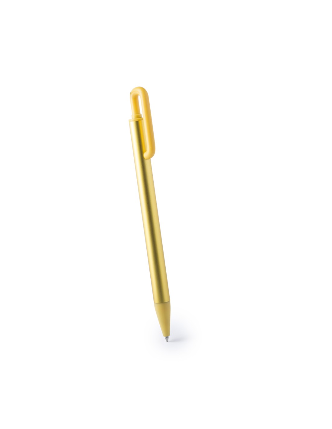Bolígrafo con cuerpo acabado en aluminio de colores brillantes. Con original clip curvado y punta a juego, de acabado mate. Cartucho jumbo y tinta azul.