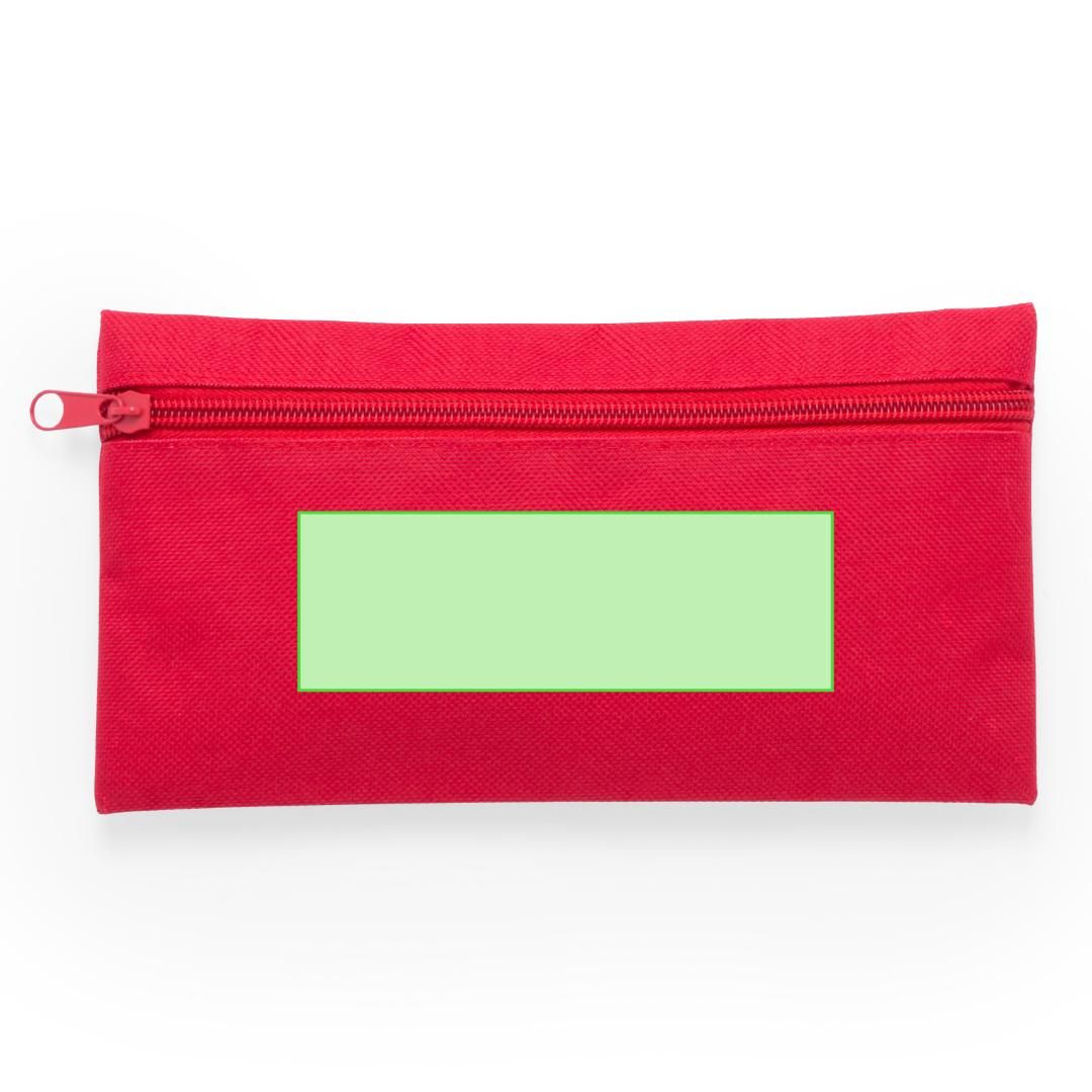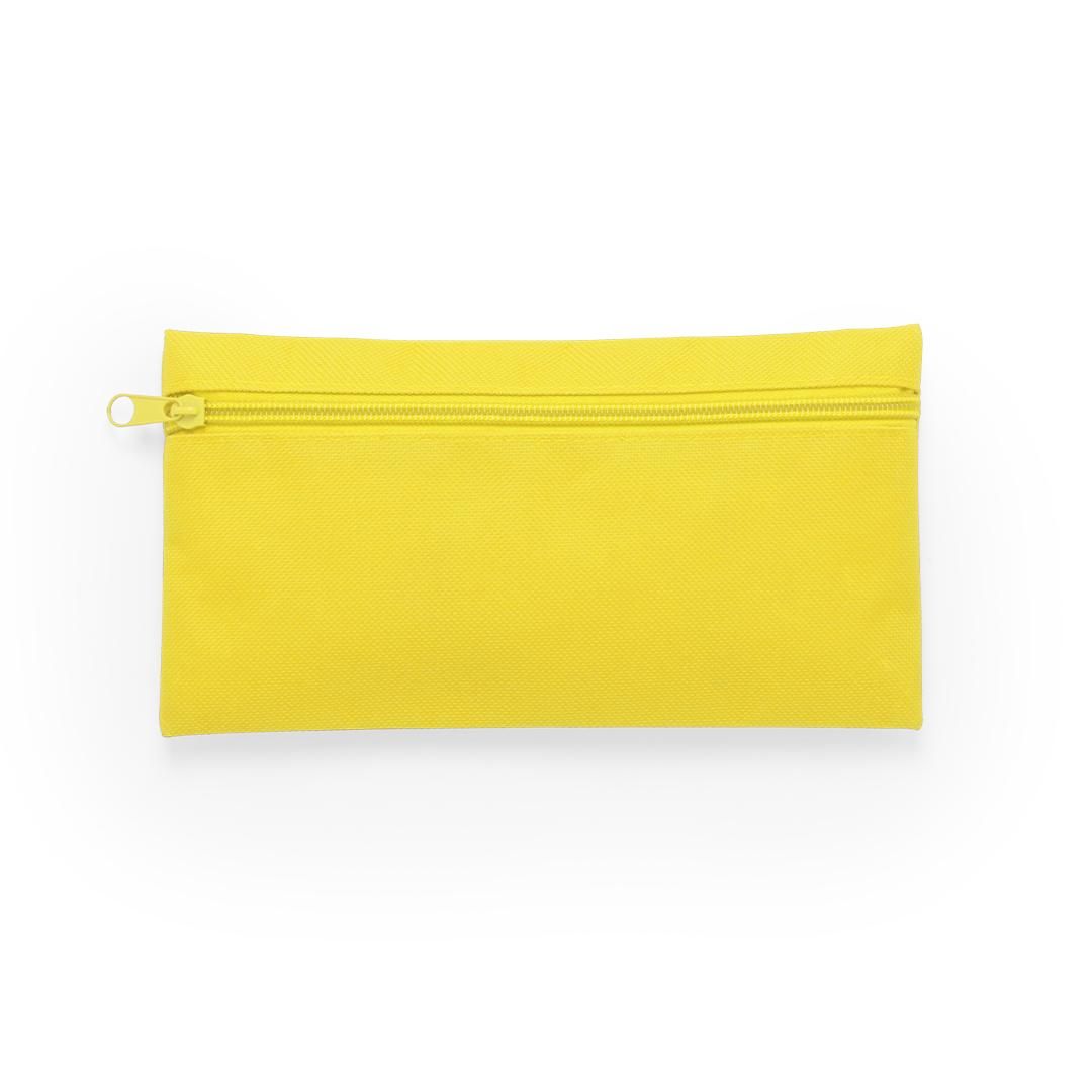 Estuche de cremallera frontal en resistente poliéster 600D de vivos colores. Con cremallera a juego.