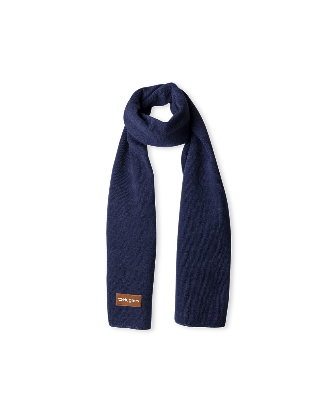 Bufanda unisex fabricada en material acrílico elástico. Con parche en polipiel cosido para marcaje y disponible en variada gama de colores.