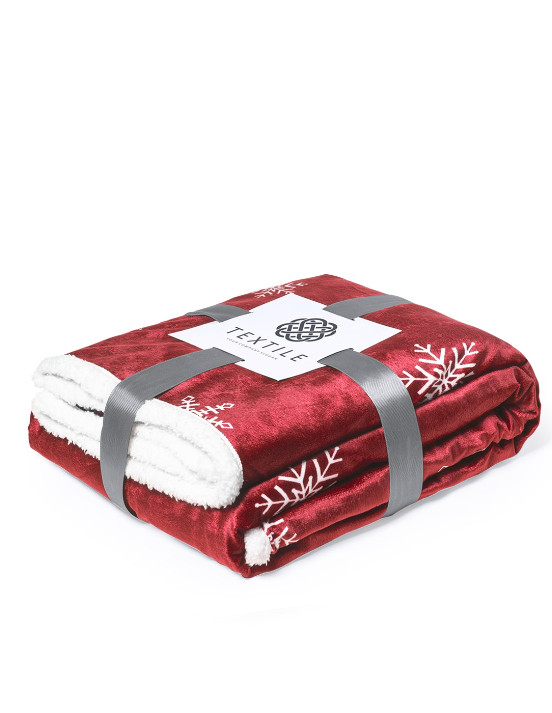 Suave y cálida manta de 125x160cm con decoración navideña. Fabricada en combinación de materiales coral fleece y sherpa de 380g/m2, muy confortables y acogedores. Presentada en cinta con lámina para fácil impresión.