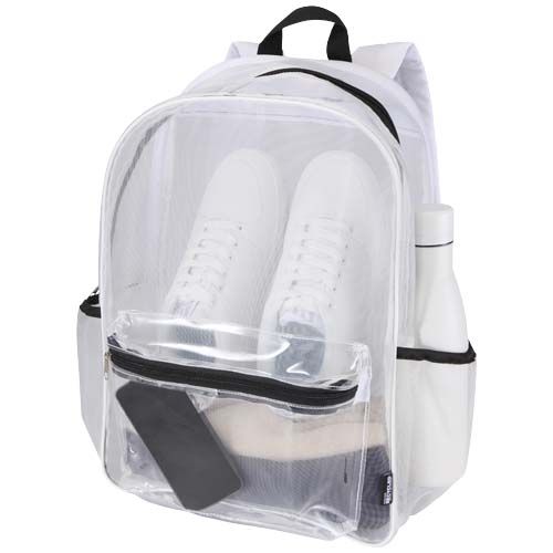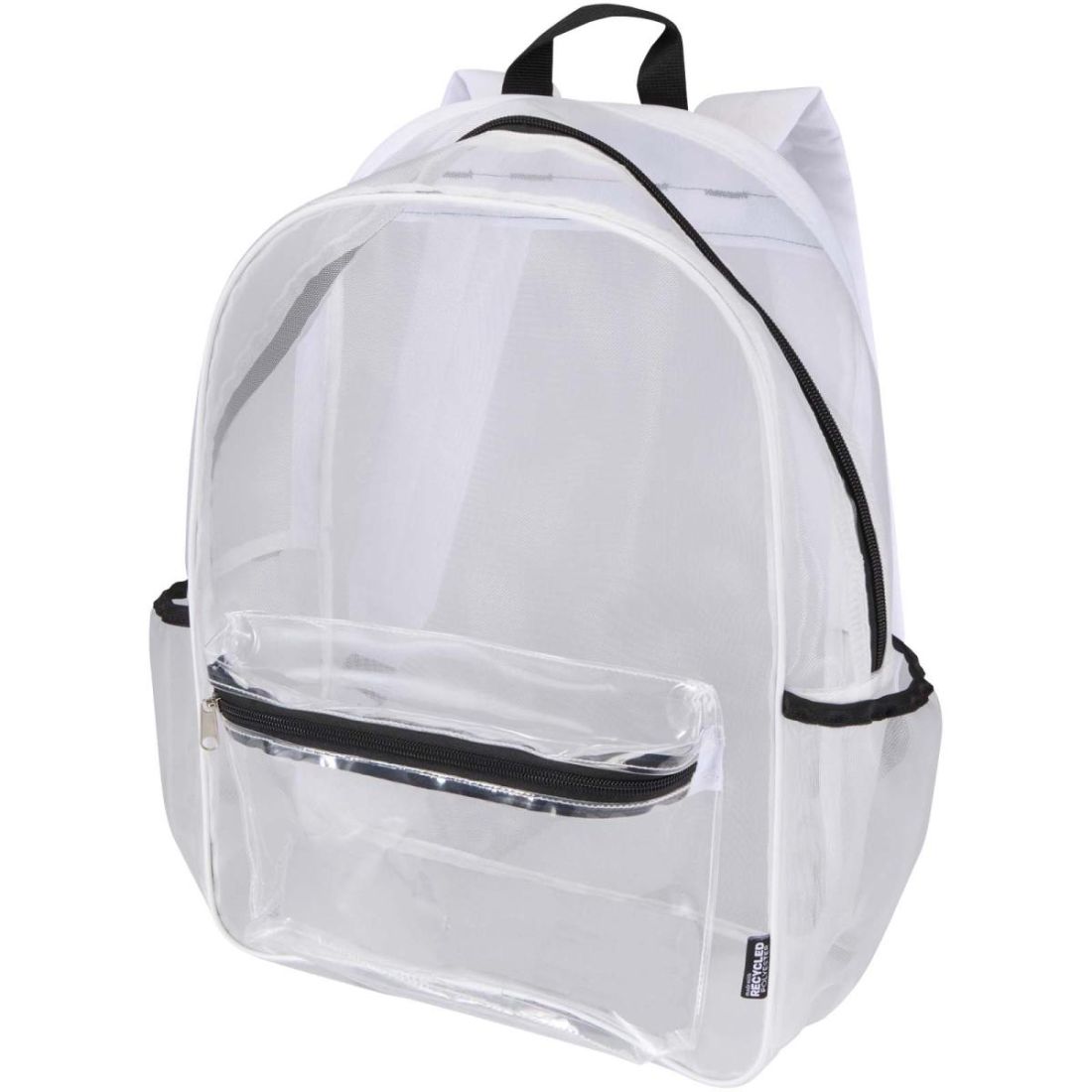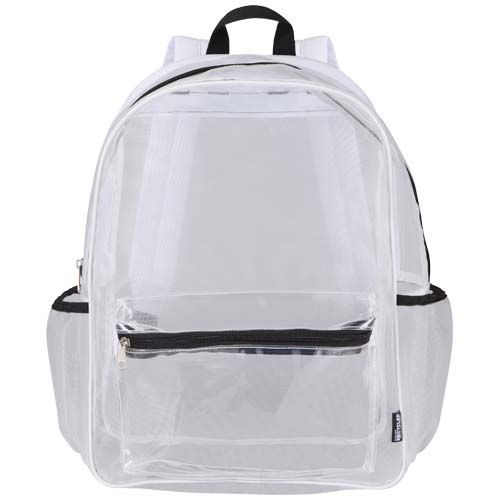 Fabricada con malla de poliéster reciclado, esta mochila ofrece una opción más sostenible sin renunciar a la practicidad ni al estilo. Dispone de un generoso compartimento principal de 18 litros para los artículos de uso diario, un bolsillo frontal con cremallera para los objetos más pequeños y dos bolsillos laterales ideales para una cantimplora o un paraguas. Las correas acolchadas y ajustables garantizan un transporte cómodo durante todo el día. La construcción de malla transparente crea un aspecto elegante y contemporáneo y permite una clara visibilidad del contenido, lo que la hace perfecta para el trabajo, eventos o colegios con políticas de bolsas transparentes.