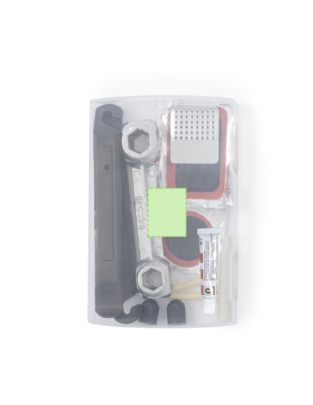 Kit de reparación para bicicleta con 15 accesorios. Fácil de llevar gracias a su reducido tamaño, permitiéndote realizar reparaciones de pinchazos en cualquier lugar. Incluye:2 llaves de desmontaje Una llave para tuercas Tubo de pegamento Cera para marcar Dos tubos de goma Lija de metal Dos tapones 5 parches