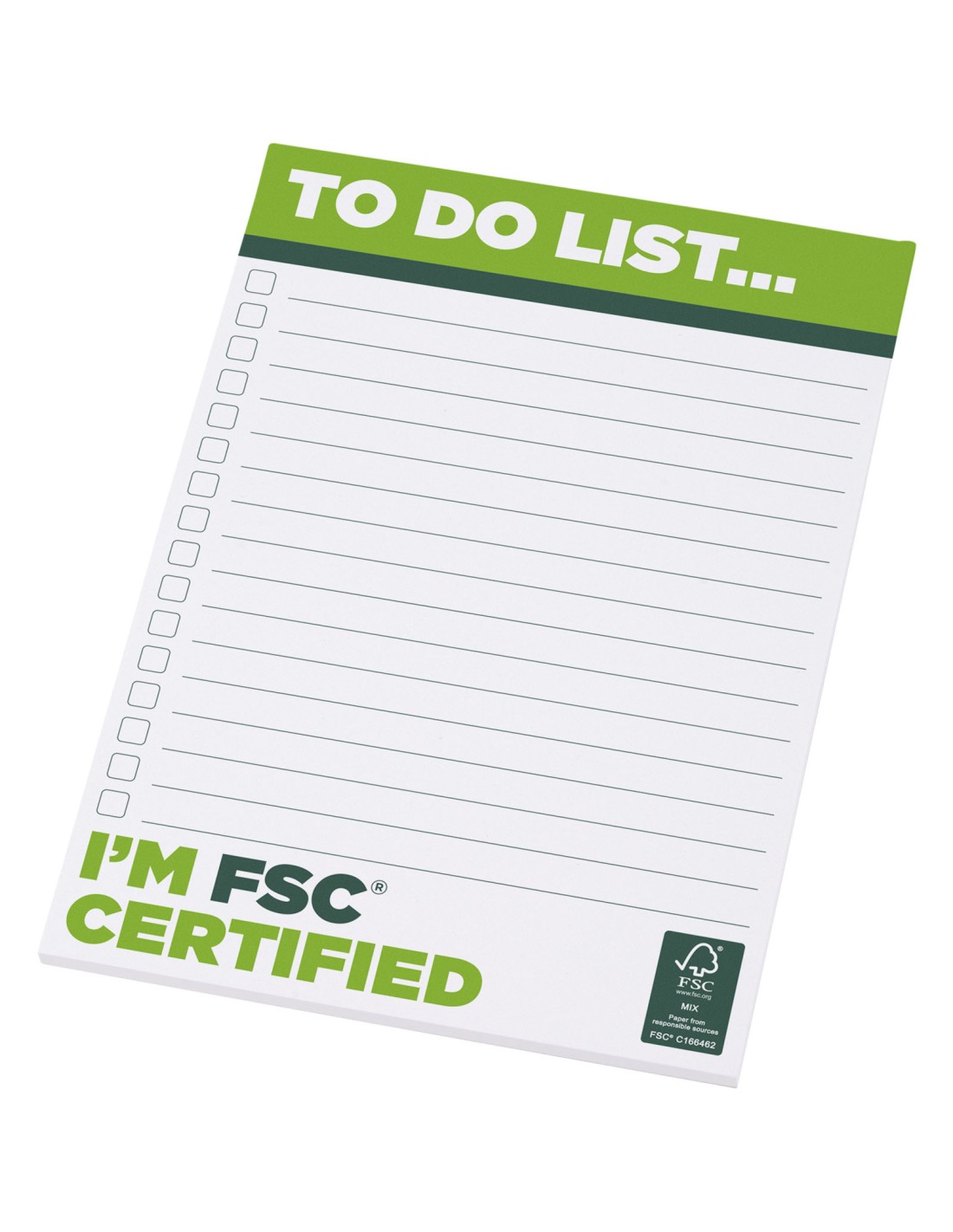 Libreta A5 de hojas blancas de 80 g/m². Impresión a todo color disponible en cada hoja. Tres tamaños disponibles (25/50/100 hojas).