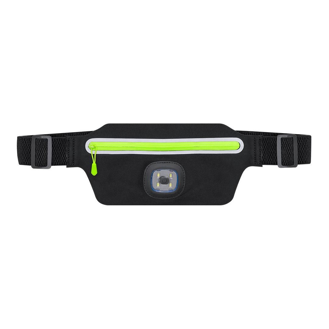 Riñonera fabricada en resistente poliéster. Compartimento principal con cierre de cremallera reflectante. En la parte frontal incluye una linterna con 3 intensidades de luz. Bateria de 300mAh, con carga a través de cable USB. Con cierre de hebilla y cinta ajustable, especialmente diseñada para actividades deportivas y de ocio.