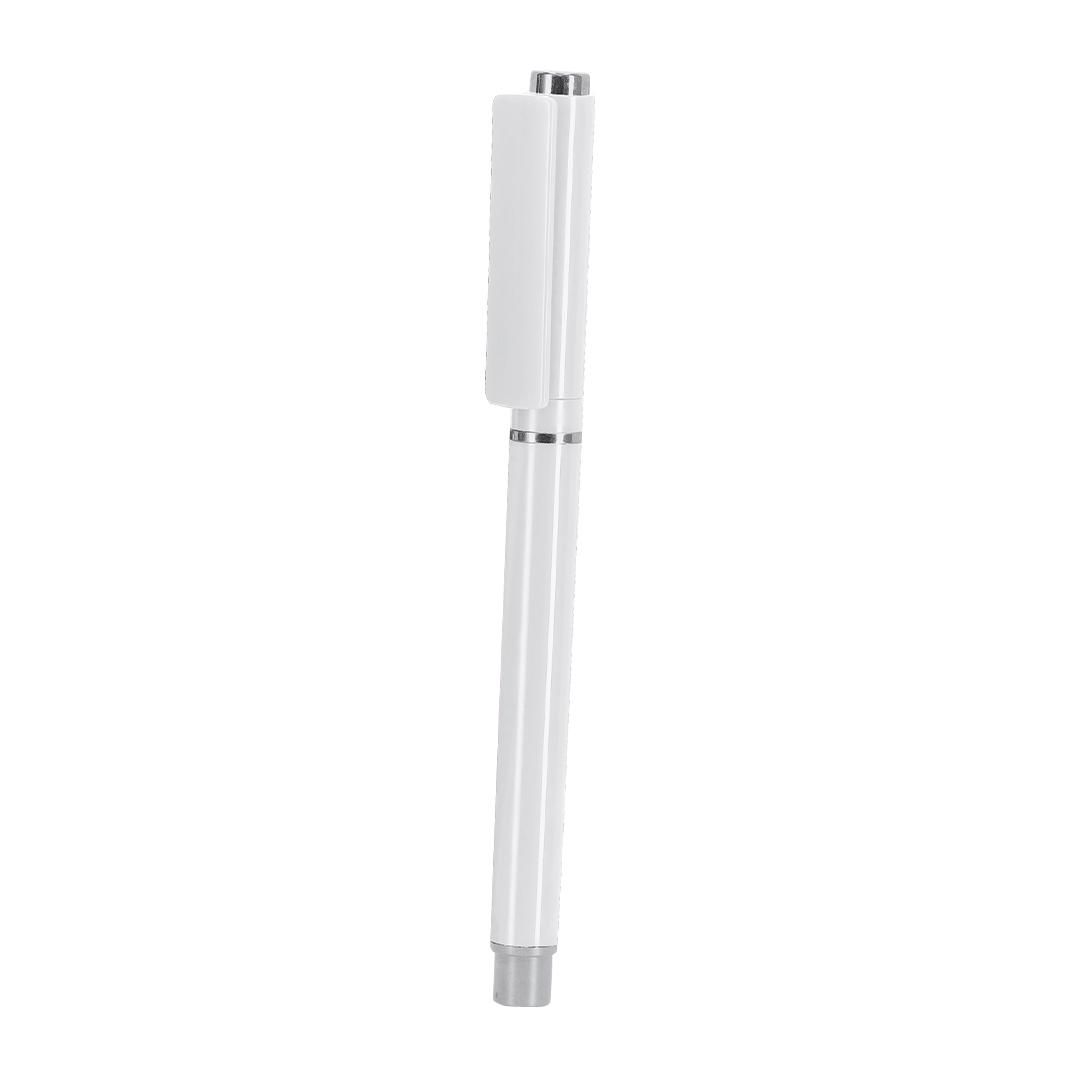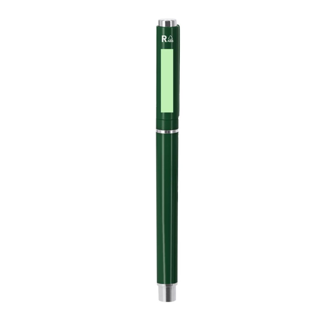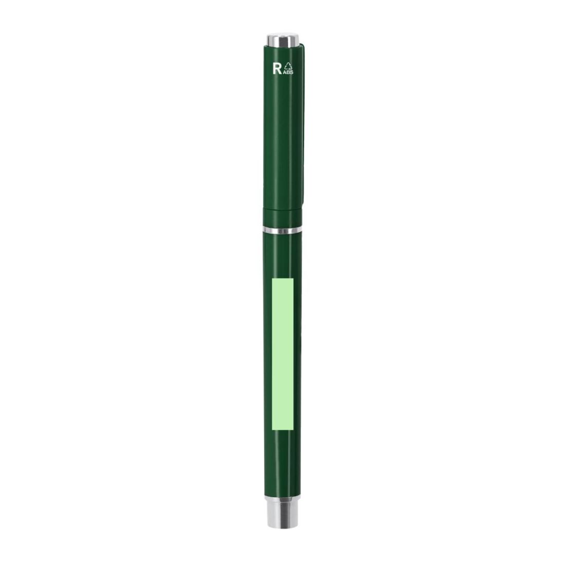 Elegante roller fabricado en ABS Reciclado. Detalles de acabado plateado, cuerpo en acabado sólido. Con cartucho jumbo, en tinta azul y con cierre de capucha. Incluye distintivo RABS.