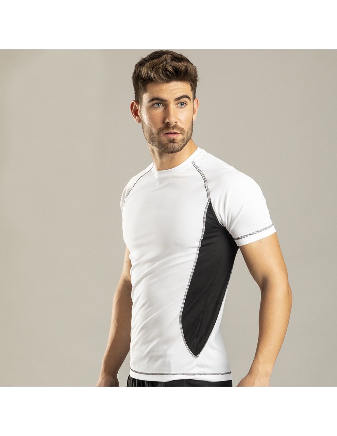Camiseta técnica para adulto en material 100% poliéster transpirable de 135g/m2. Diseño en color blanco con costuras de refuerzo y laterales en vivos...