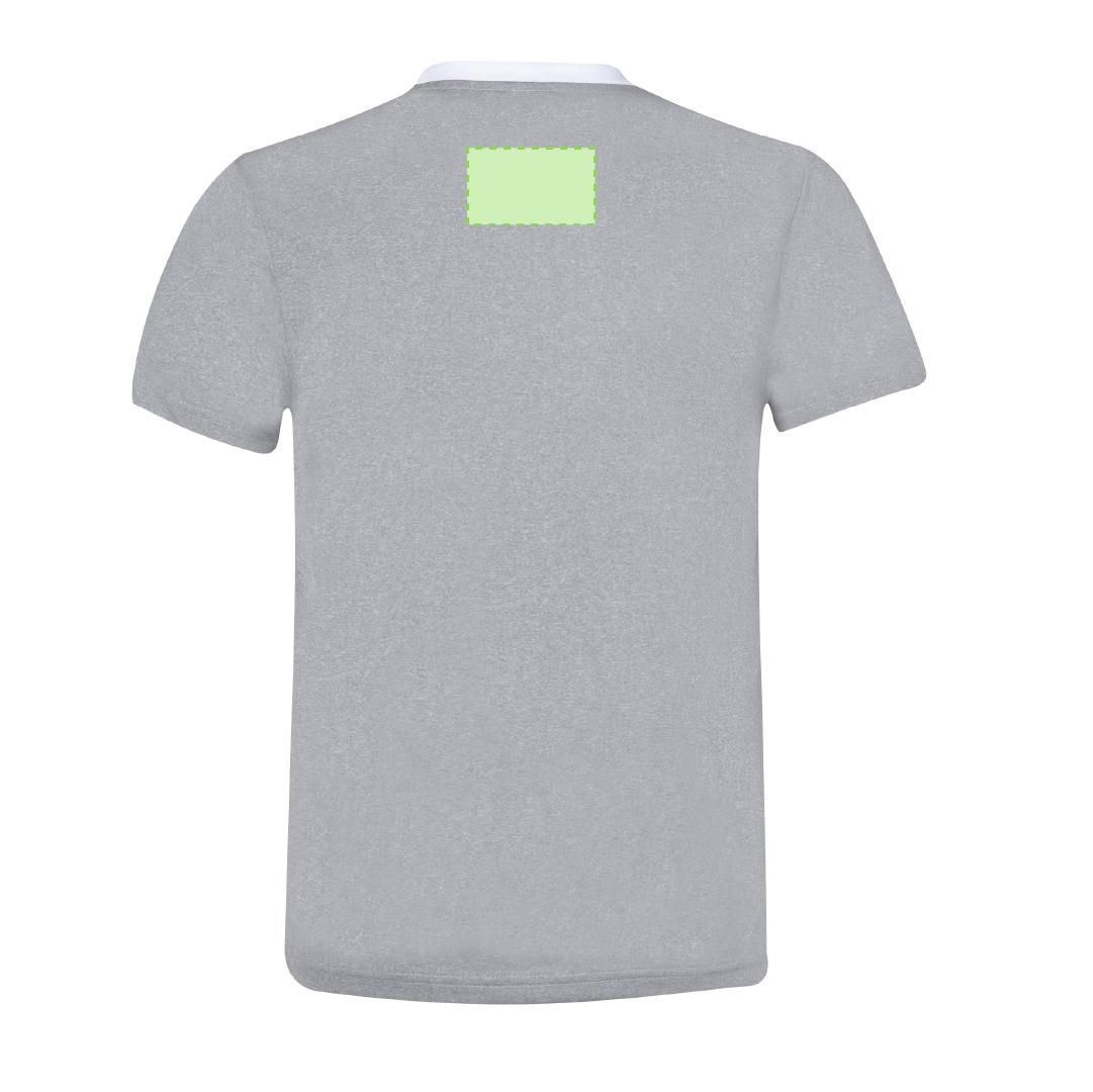 Camiseta técnica para adulto en material transpirable poliéster/elastano de 135g/m2. De elegante diseño bicolor, con frontal en color blanco, espalda detalles en gris. Disponible en tallas S, M, L, XL, XXL. Color blanco especialmente fabricado para marcaje en sublimación.