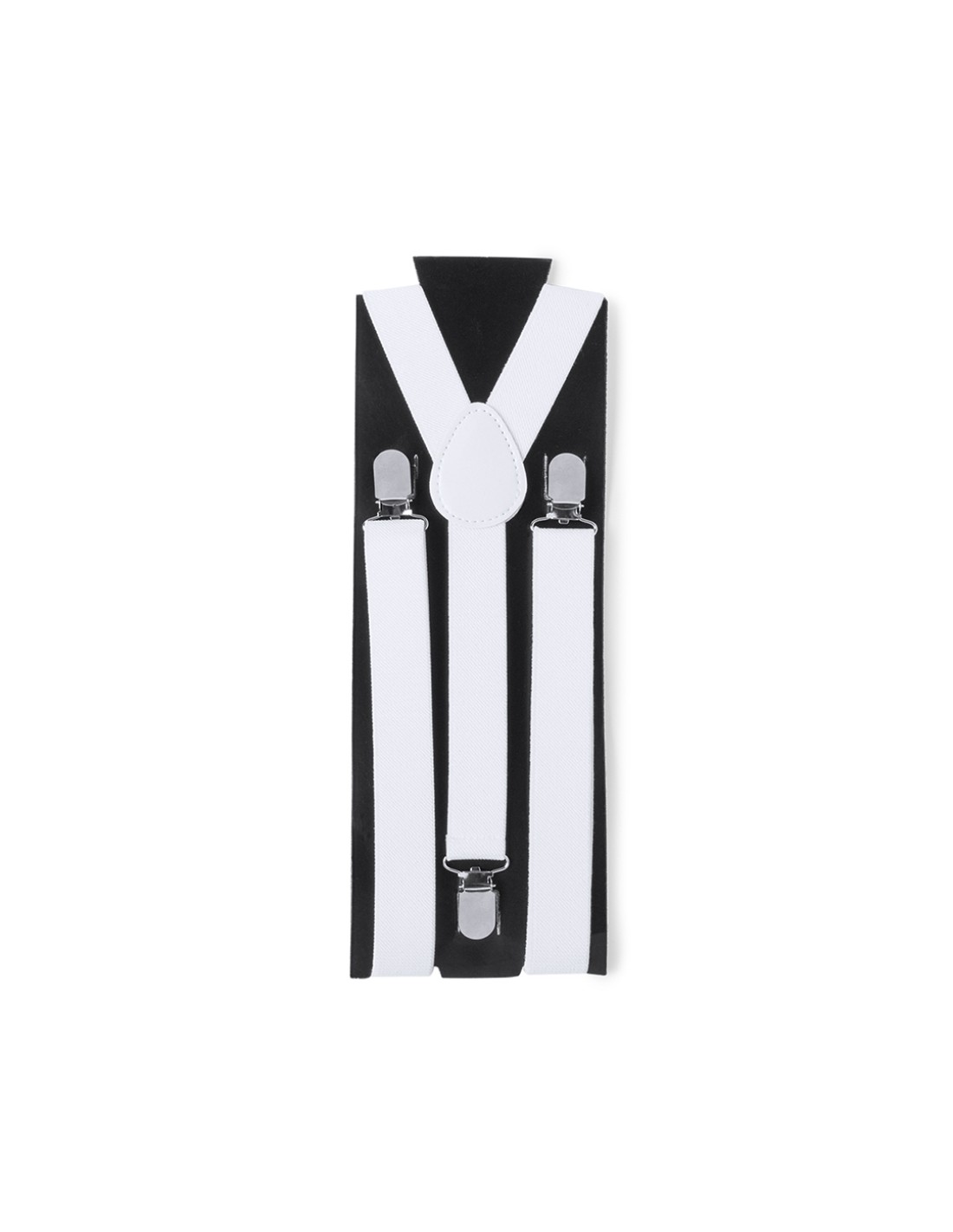 Tirántes elásticos de poliéster en sobrios colores con accesorios metálicos. Con refuerzo de polipiel en espalda a juego y presentados en original cartulina individual de color negro.