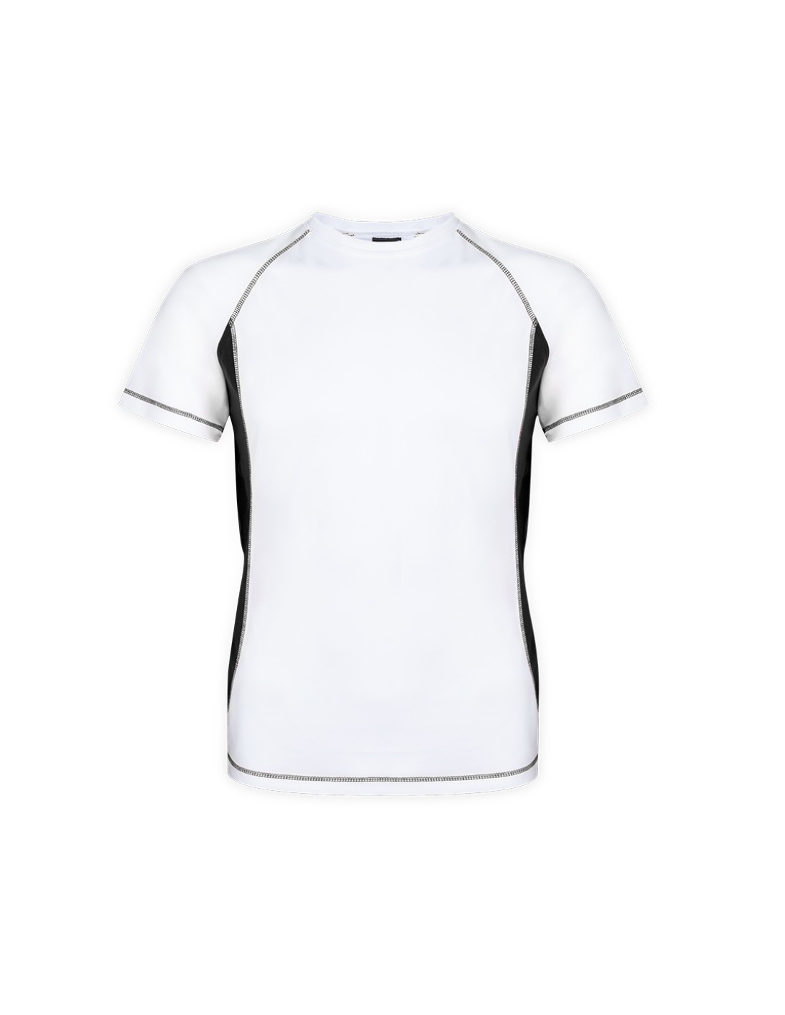 Camiseta técnica para adulto en material 100% poliéster transpirable de 135g/m2. Diseño en color blanco con costuras de refuerzo y laterales en vivos...