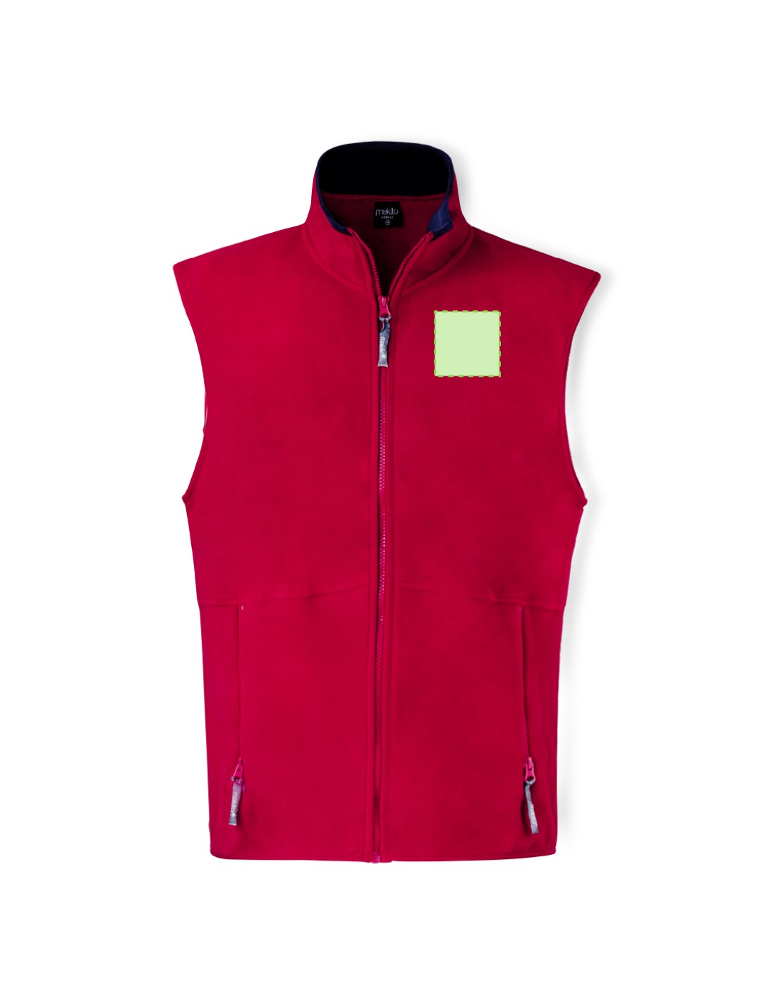 Chaleco en cálido y suave polar fleece de 280g/m2 con tratamiento anti-pilling. Con cuello de interior en color, cierre de cremallera con cinta en tirador, bolsillos laterales de cremallera y cintura elástica. Disponible en tallas M, L, XL, XXL.
