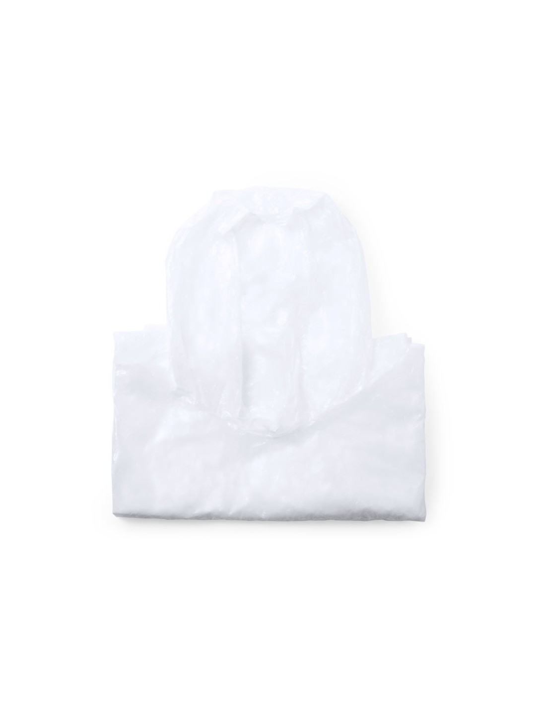 Poncho para adulto en LDPE de color blanco y acabado frosted -medidas 127x102 cm-. Presentado en estuche individual con tapa y mosquetón a juego....