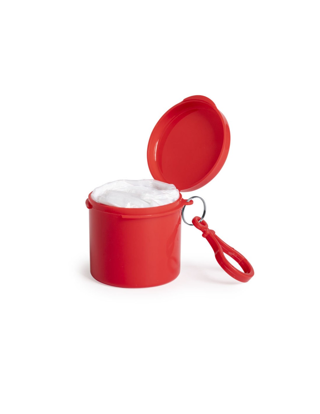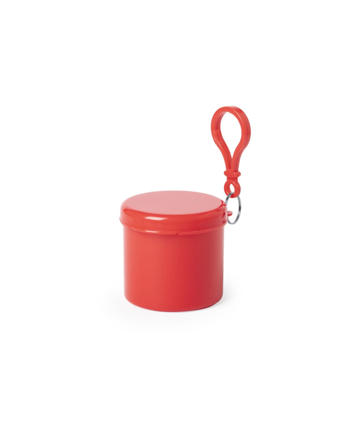 Poncho para adulto en LDPE de color blanco y acabado frosted -medidas 127x102 cm-. Presentado en estuche individual con tapa y mosquetón a juego. Estuche disponible en variada gama de colores. Talla única.