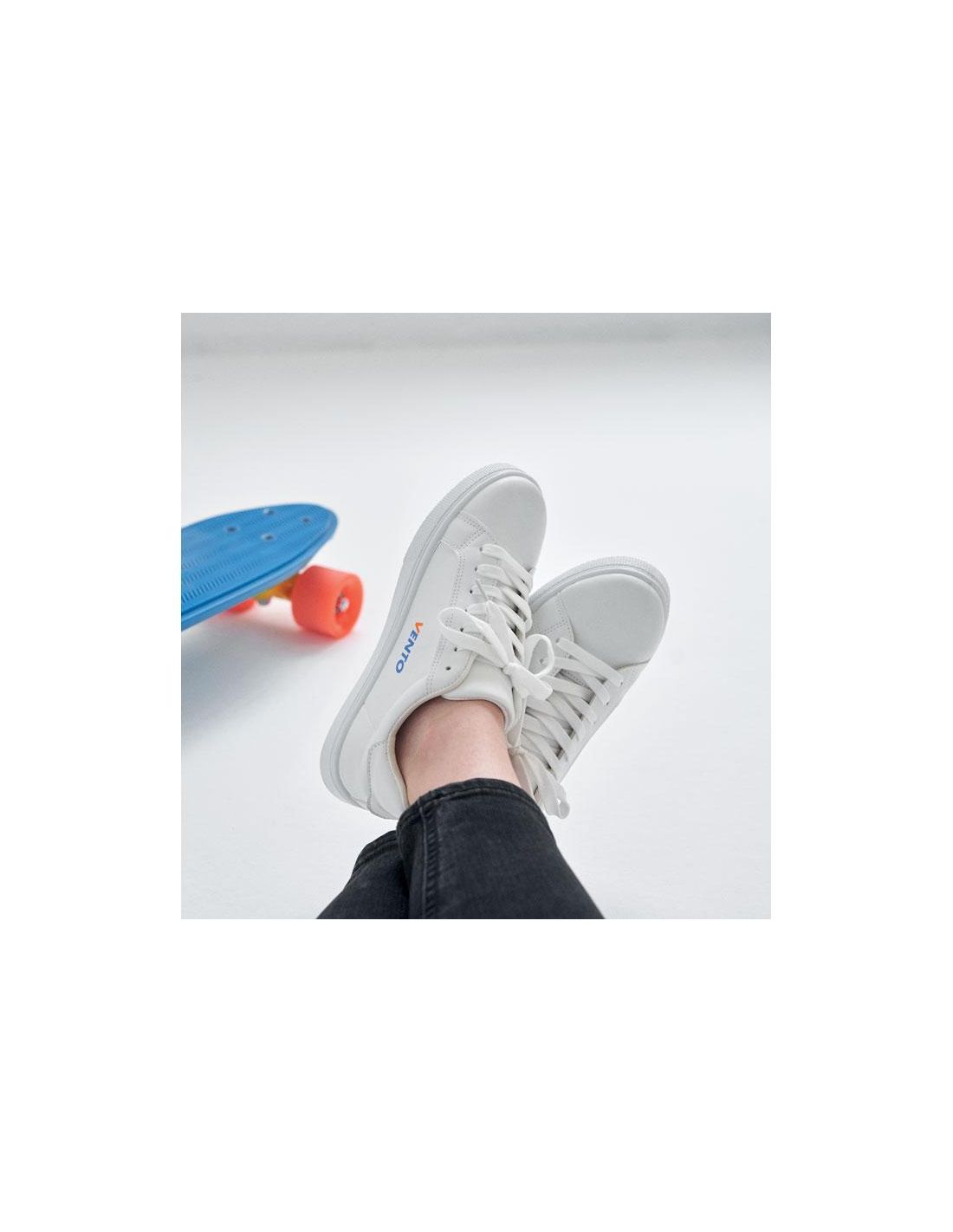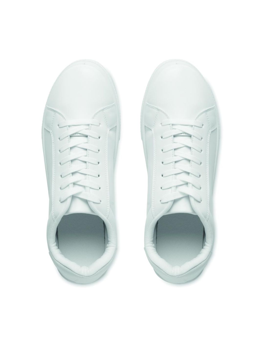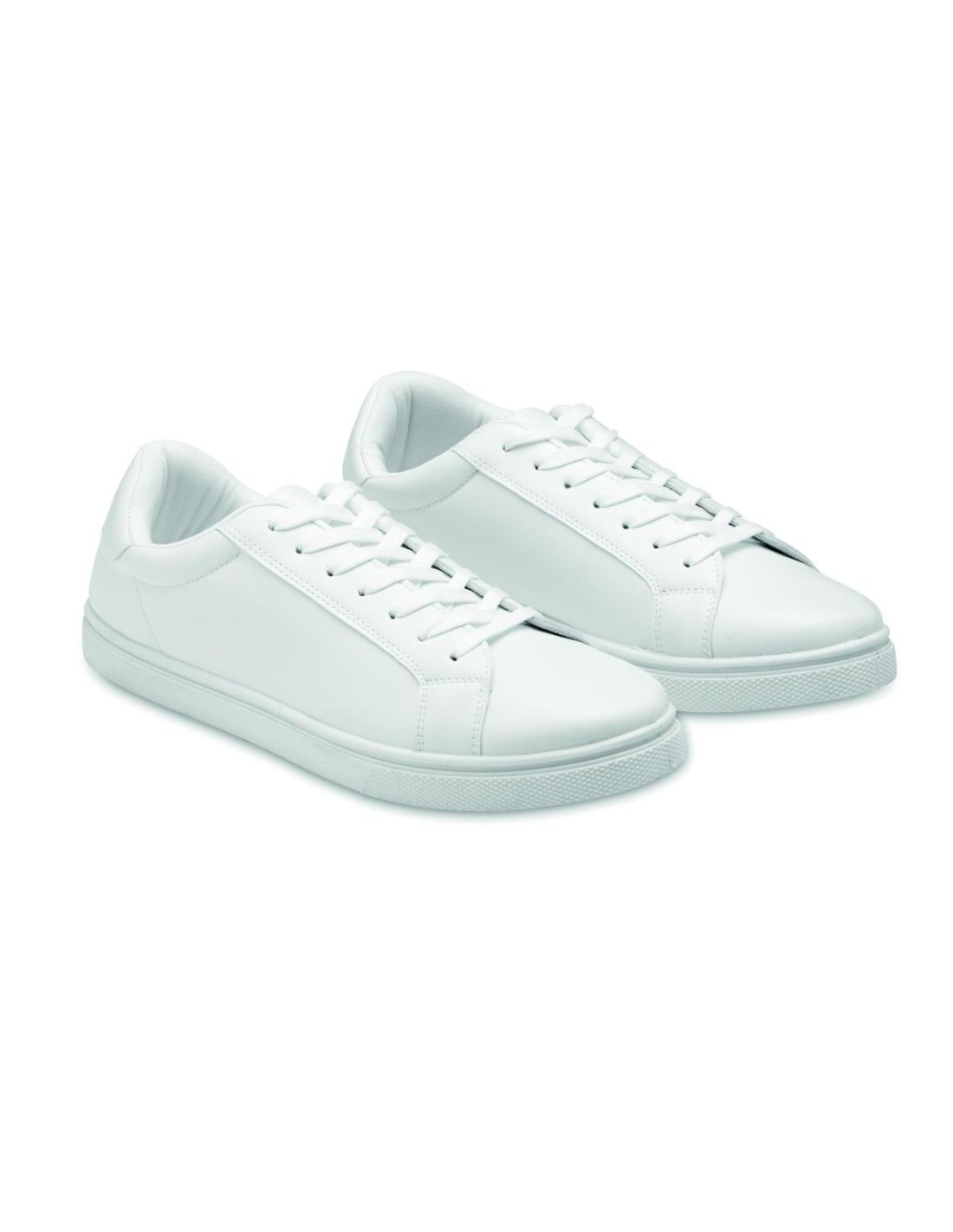 Zapatillas ligeras de PU con suela de goma y cordones de poliéster. Talla: 46. Presentadas en caja de zapatos blanca. Las zapatillas se entregan con los cordones enhebrados únicamente en los 2 primeros ojales.