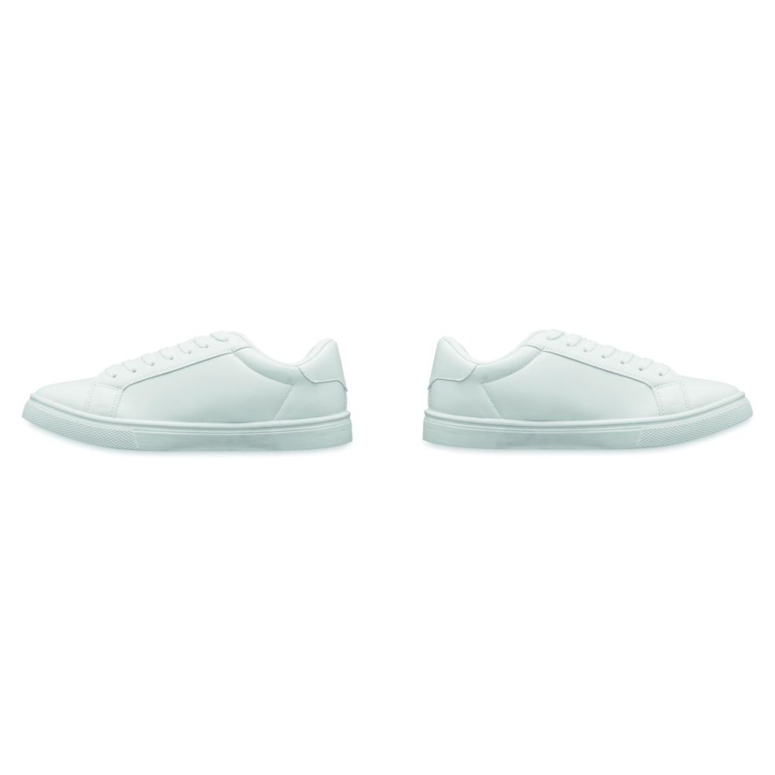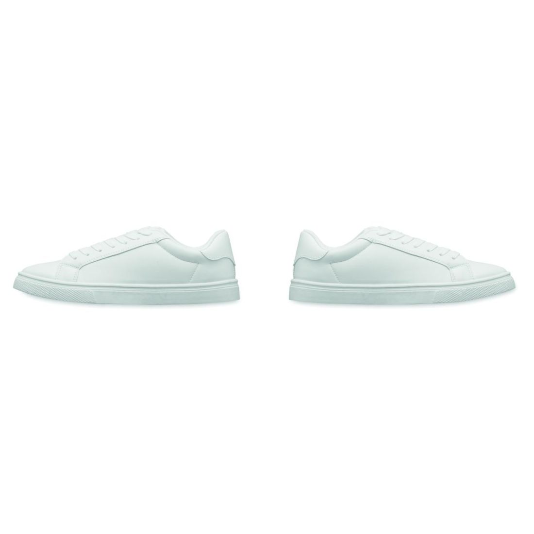 Zapatillas ligeras de PU con suela de caucho y cordones de poliéster. Talla: 47. Presentadas en caja blanca. Las zapatillas se entregan con los cordones enhebrados sólo en los 2 primeros ojales.