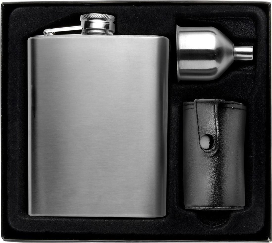 Set con petaca de acero inox. Personalizada 102807