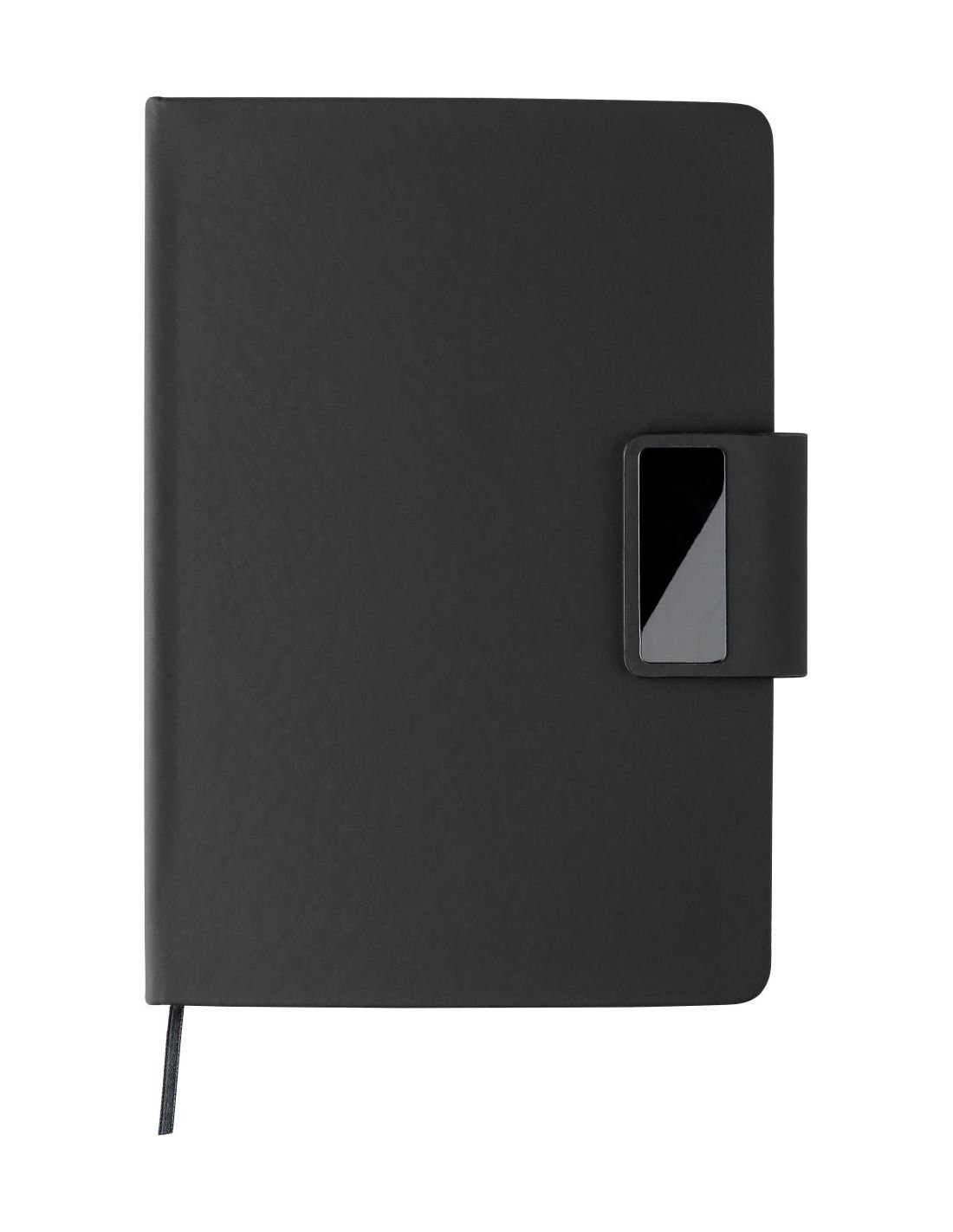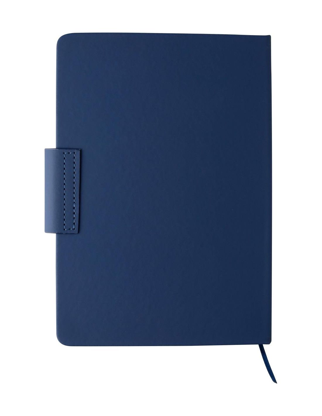 Set de regalo en caja de cartón compuesto por un bolígrafo giratorio de aluminio reciclado con tinta azul y una libreta de PU reciclado con 80 hojas de papel FSC rayado de 70 g/m², marcapáginas y cierre magnético metálico con placa de grabado en gris plomo. Ambos artículos presentan un logotipo reciclado: termograbado en la libreta y a láser en el bolígrafo.