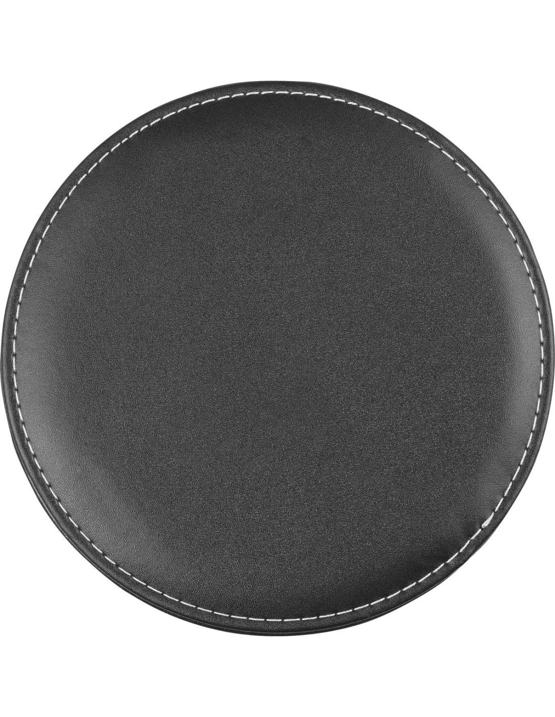 Set de vino en estuche circular con cuatro accesorios de acero inoxidable para vino.