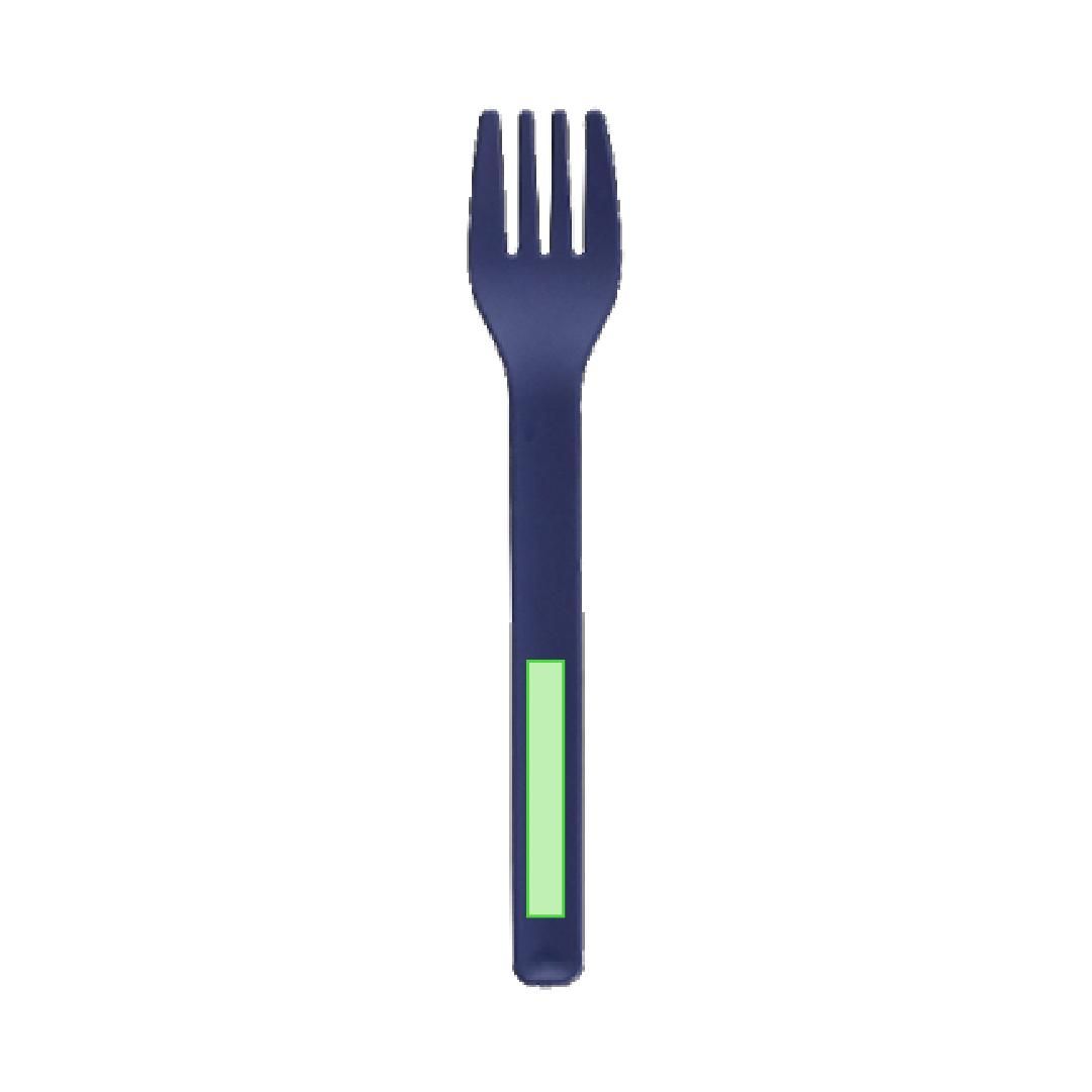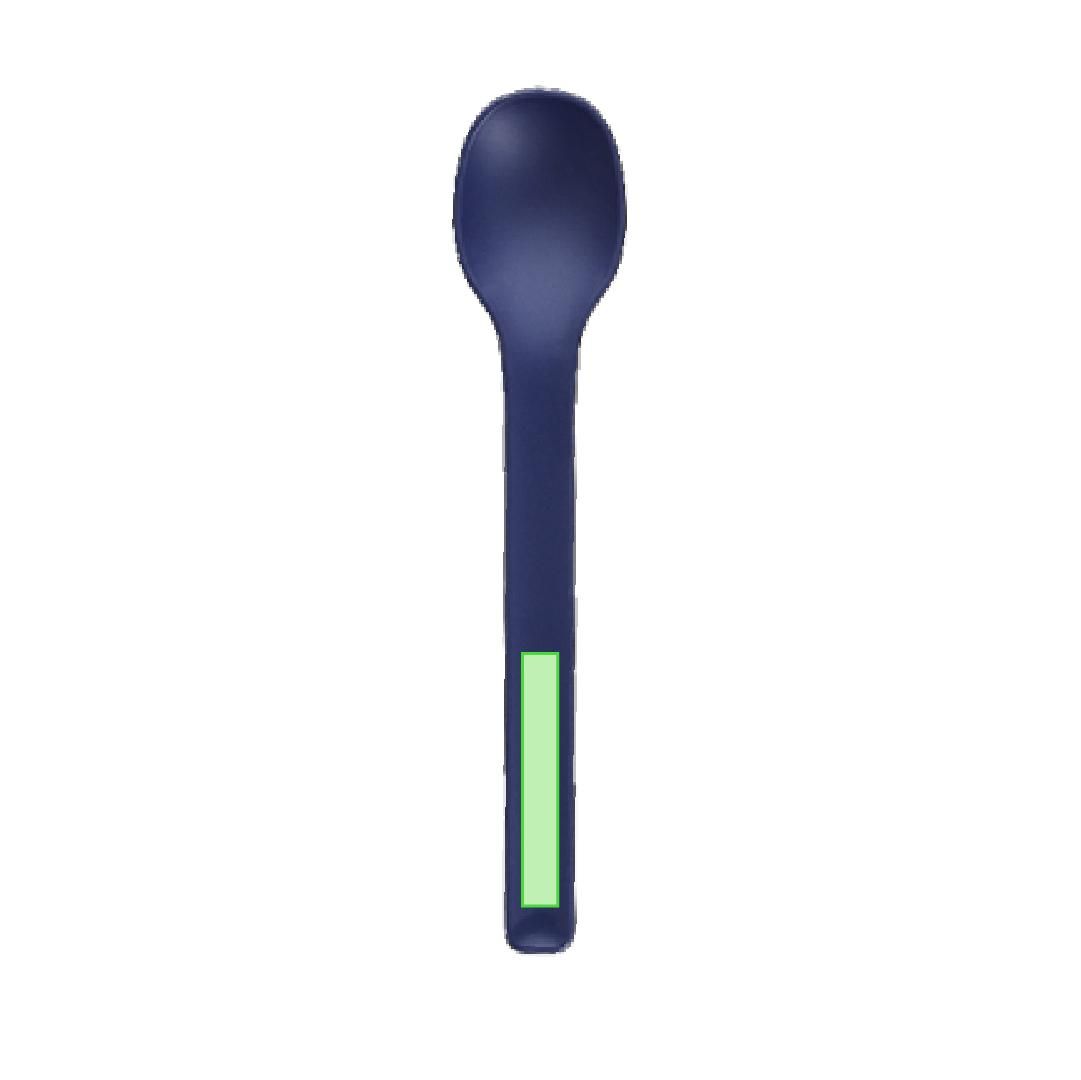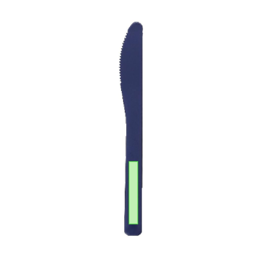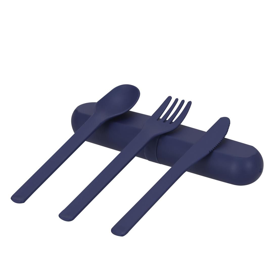 Set de cubiertos elaborados en PLA, en estuche de presentación a juego. El estuche cuenta con sistema de cierre push para mayor seguridad. Este completo set incluye cuchara, tenedor y cuchillo.