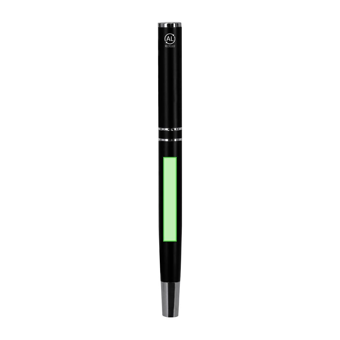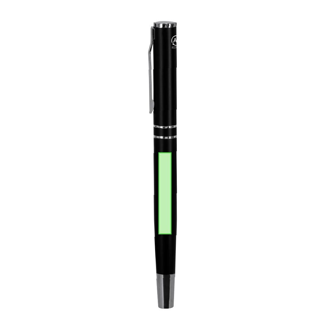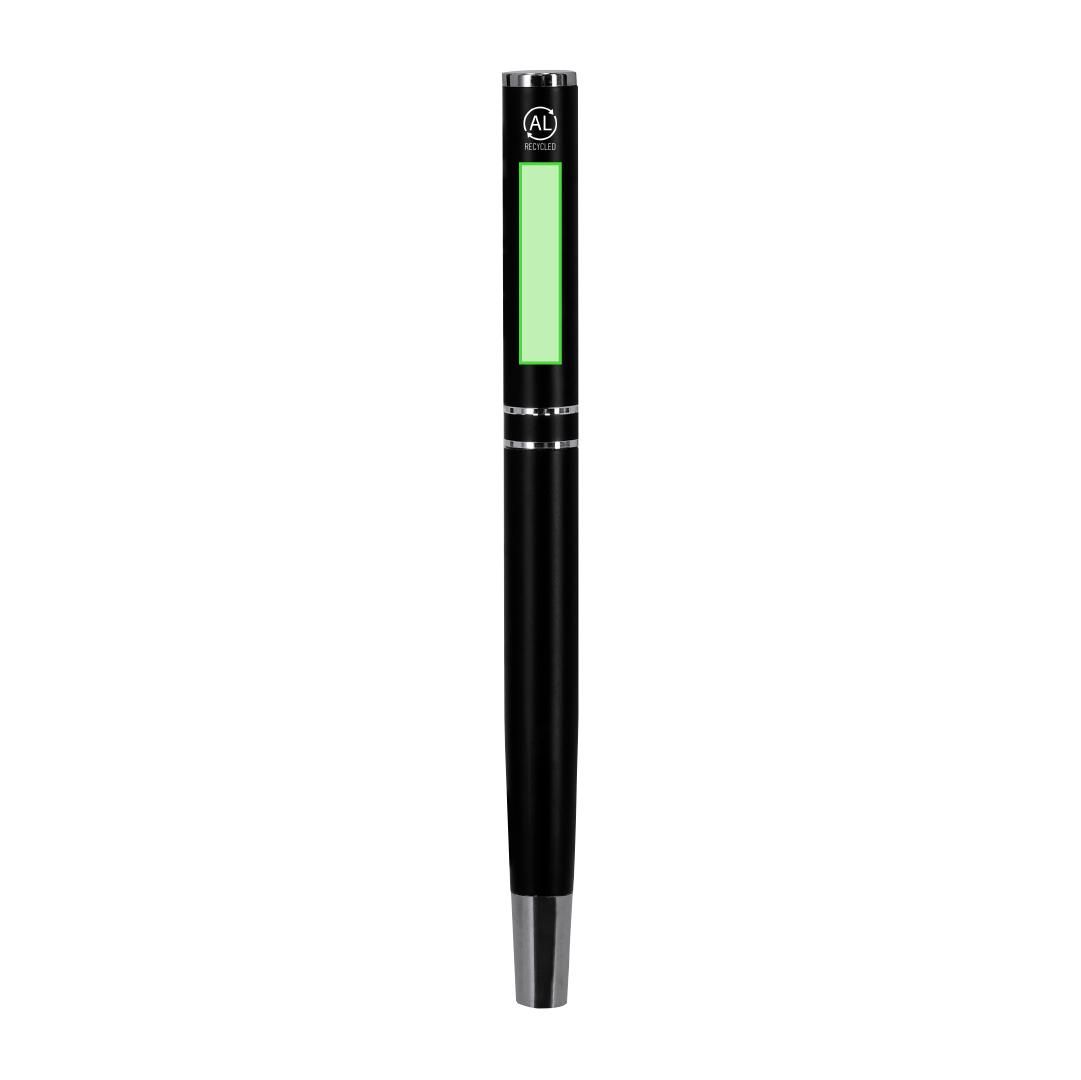 Set de bolígrafo y roller fabricados en Aluminio Reciclado, en elegante diseño negro mate con distinguidos accesorios en acabado plateado. Bolígrafo...