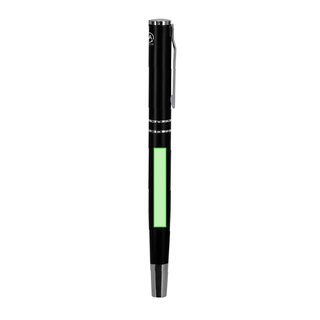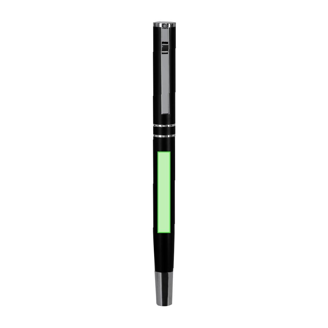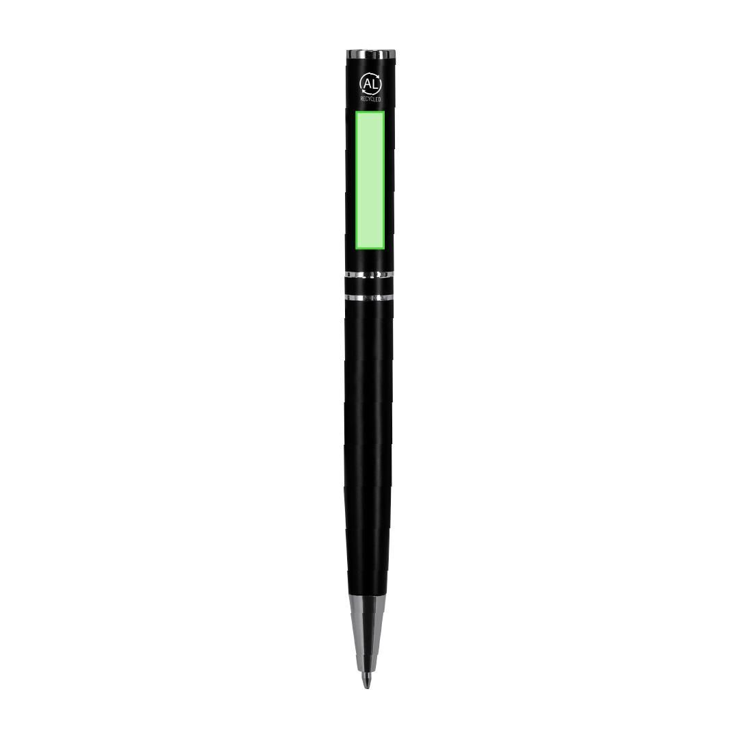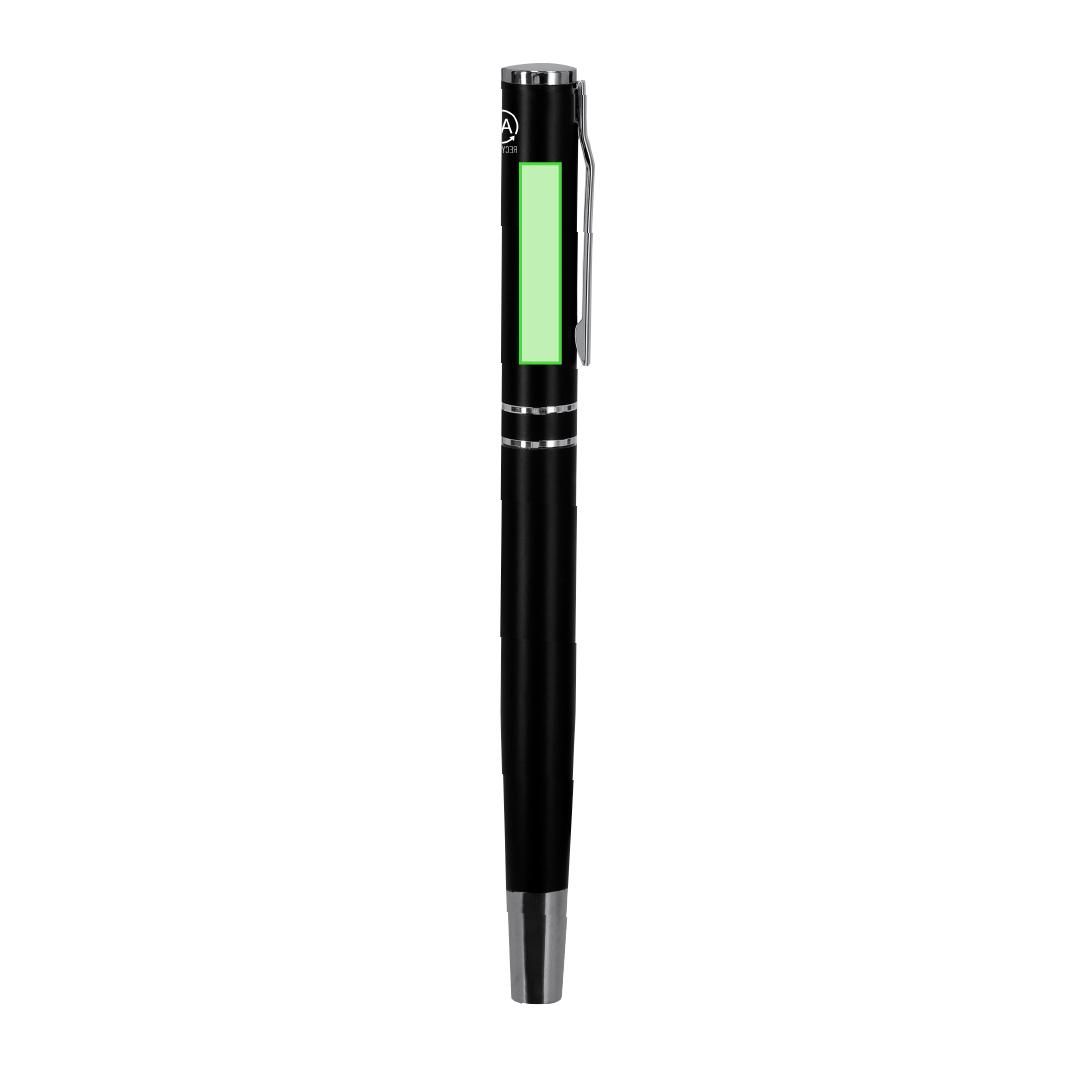 Set de bolígrafo y roller fabricados en Aluminio Reciclado, en elegante diseño negro mate con distinguidos accesorios en acabado plateado. Bolígrafo...
