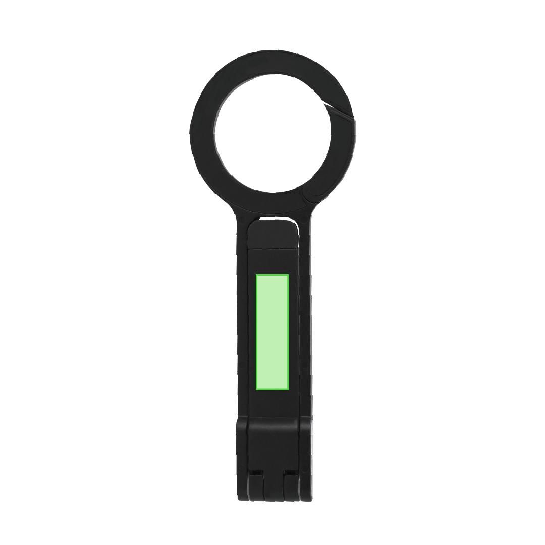 Soporte multifuncional magnético plegable fabricado en resistente ABS en acabado mate. Con base desplegable para graduar altura. En la parte superior dispone de enganche mosquetón para fácil transporte.