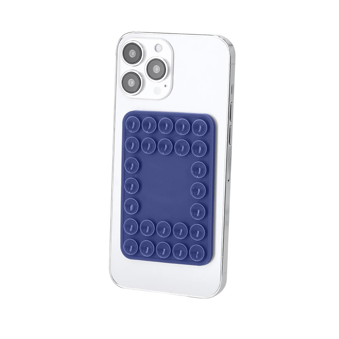Soporte magnético para smartphone en silicona. Con lateral frontal en terminación ventosa, ideal para poner tu móvil en cualquier superficie.