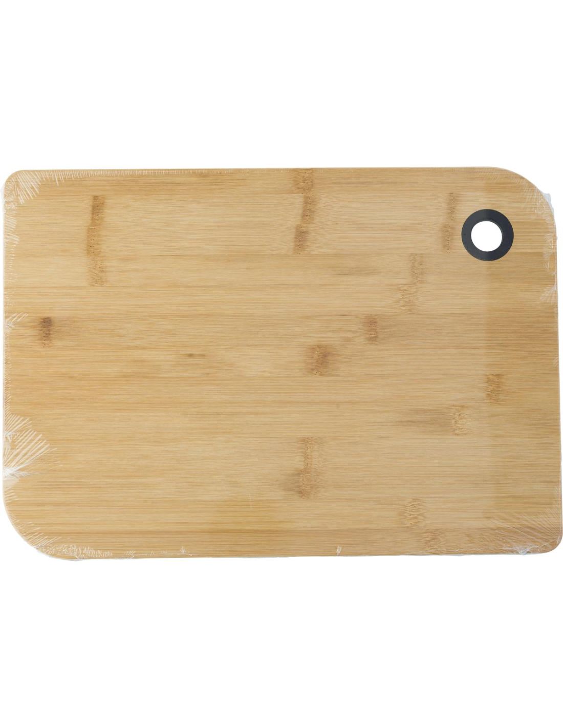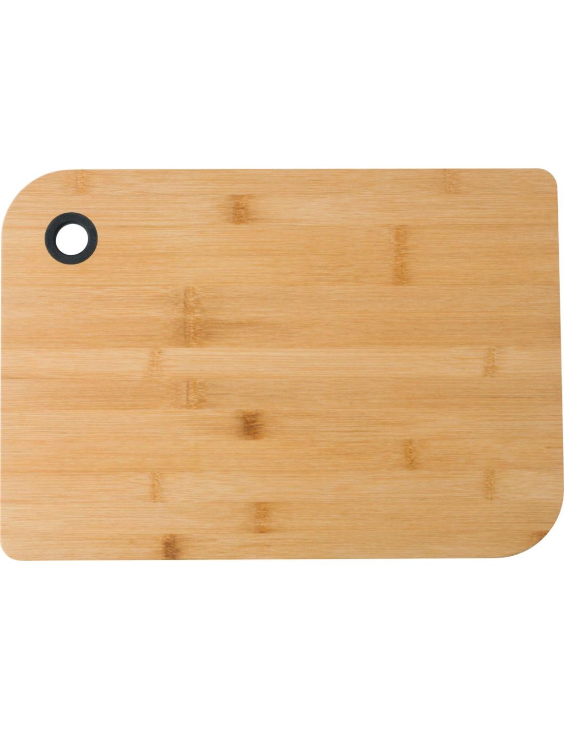 Tabla de bambú para cortar o servir. El orificio para sujetarla está recubierto con un anillo de silicona.