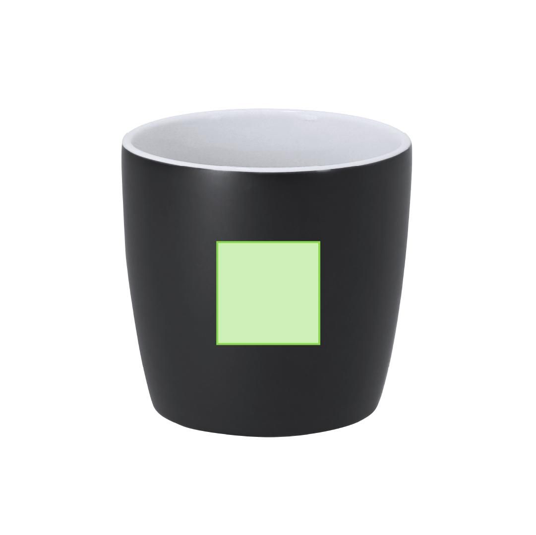Taza de cerámica con 350 ml de capacidad. Distinguido diseño de interior en color y exterior en negro en acabado mate.