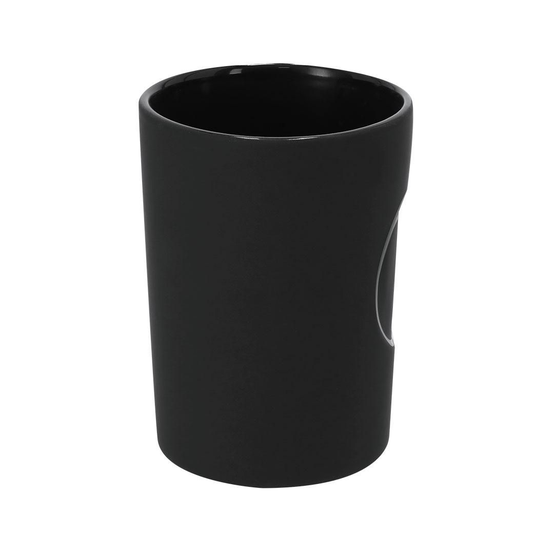 Taza de cerámica de 400 ml de capacidad. Exterior en acabado matere, e interior en acabado brillo, con relieve en el centro. Especialmente diseñada para marcaje láser.
