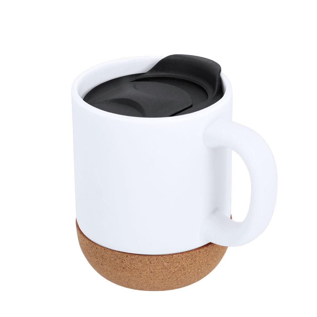 Taza térmica con capacidad de 330 ml fabricada en cerámica. Cuerpo en color mate e interior en acabado brillo con base con corcho, siendo este un excelente aislante térmico. Incluye tapa con función antideslizante para disfrutar de tu bebida favorita. Con asa de agarre.
