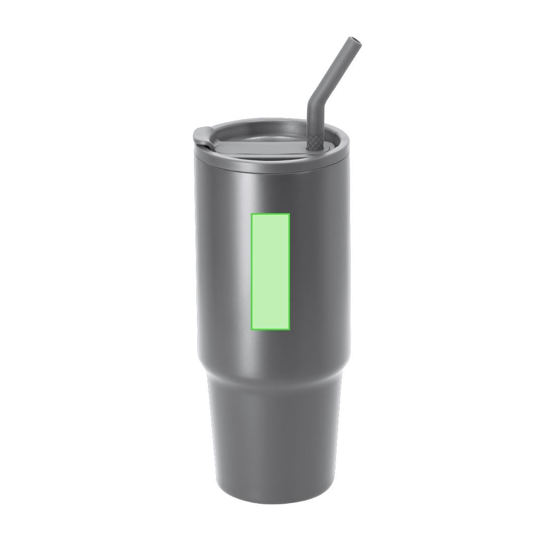 Taza térmica en Acero Inox Reciclado de doble pared y 900 ml de capacidad. Incluye tapadera con sistema de cierre a presión translúcido y con orificio para beber y tapa deslizante para pajita. Es ideal para tener en tu escritorio, mesa o en cualquier superficie donde disfrutar tranquilamente de tu bebida favorita. Incluye distintivo de Acero Inox Reciclado.