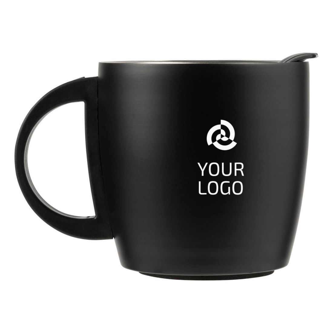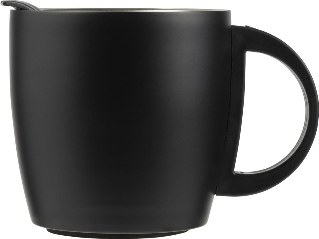 Taza (350 ml) con doble pared de acero inoxidable 304. En la tapa tiene una junta de silicona y la base es antideslizante.