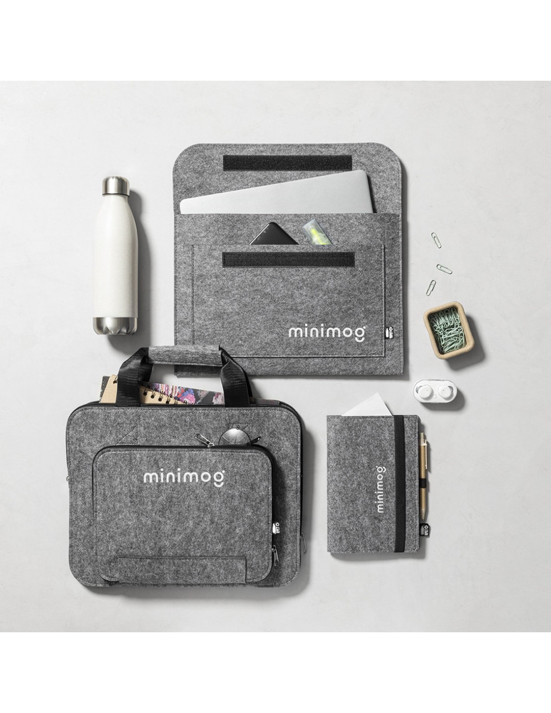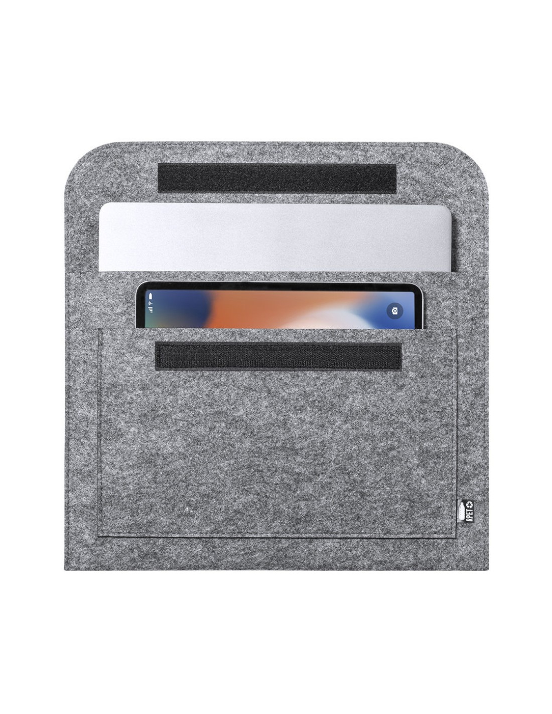 Funda para ordenador portátil de línea nature y en resistente fieltro RPET reciclado, fruto de la combinación del proceso de reciclaje de materiales plásticos junto con la técnica milenaria de fabricación del fieltro, dando como resultado un material de eco-tendencia que, además de ser de origen reciclado, también se convierte en reciclable. Solapa con cierres de velcro y bolsillo frontal, con distintivo RPET en etiqueta exterior.