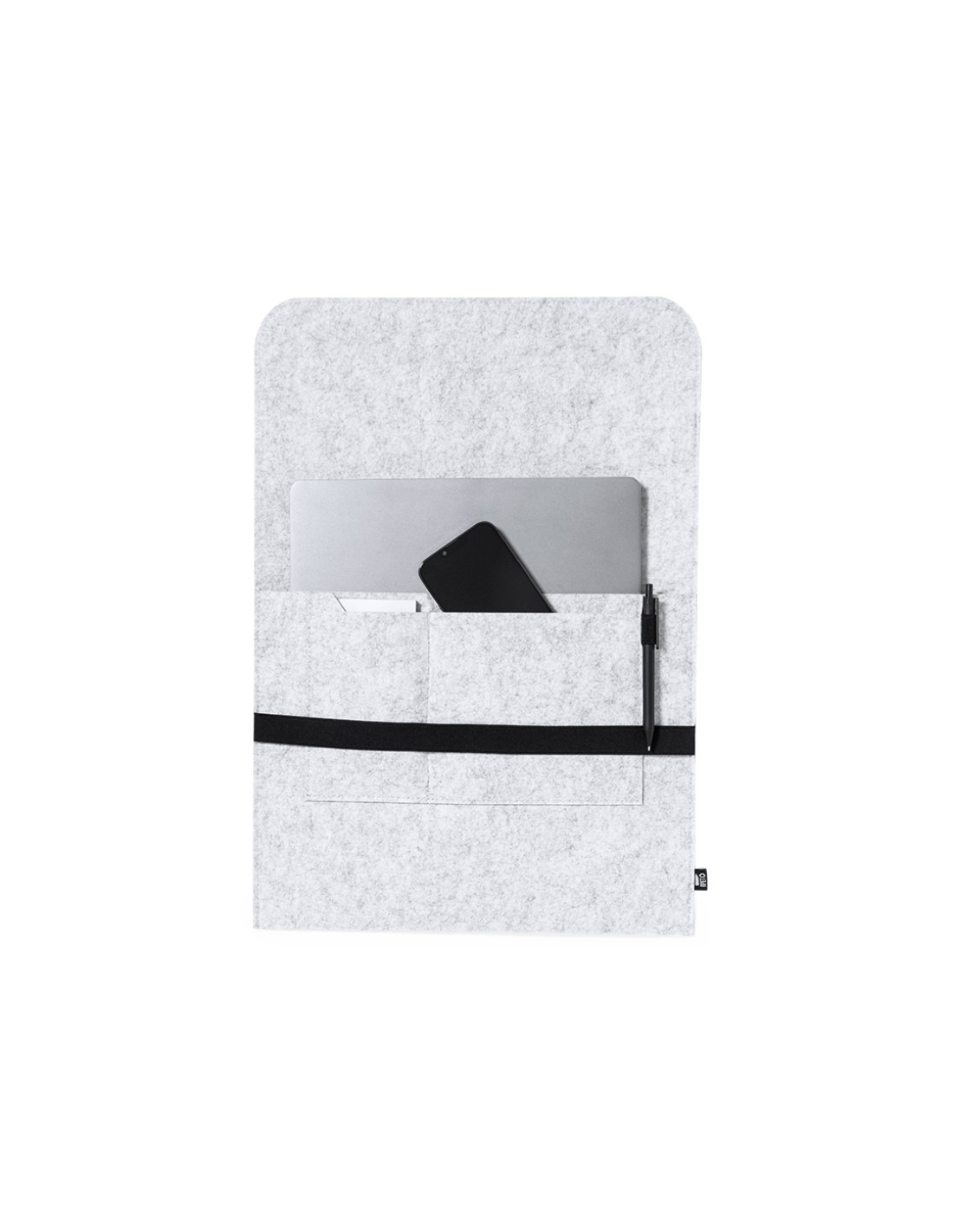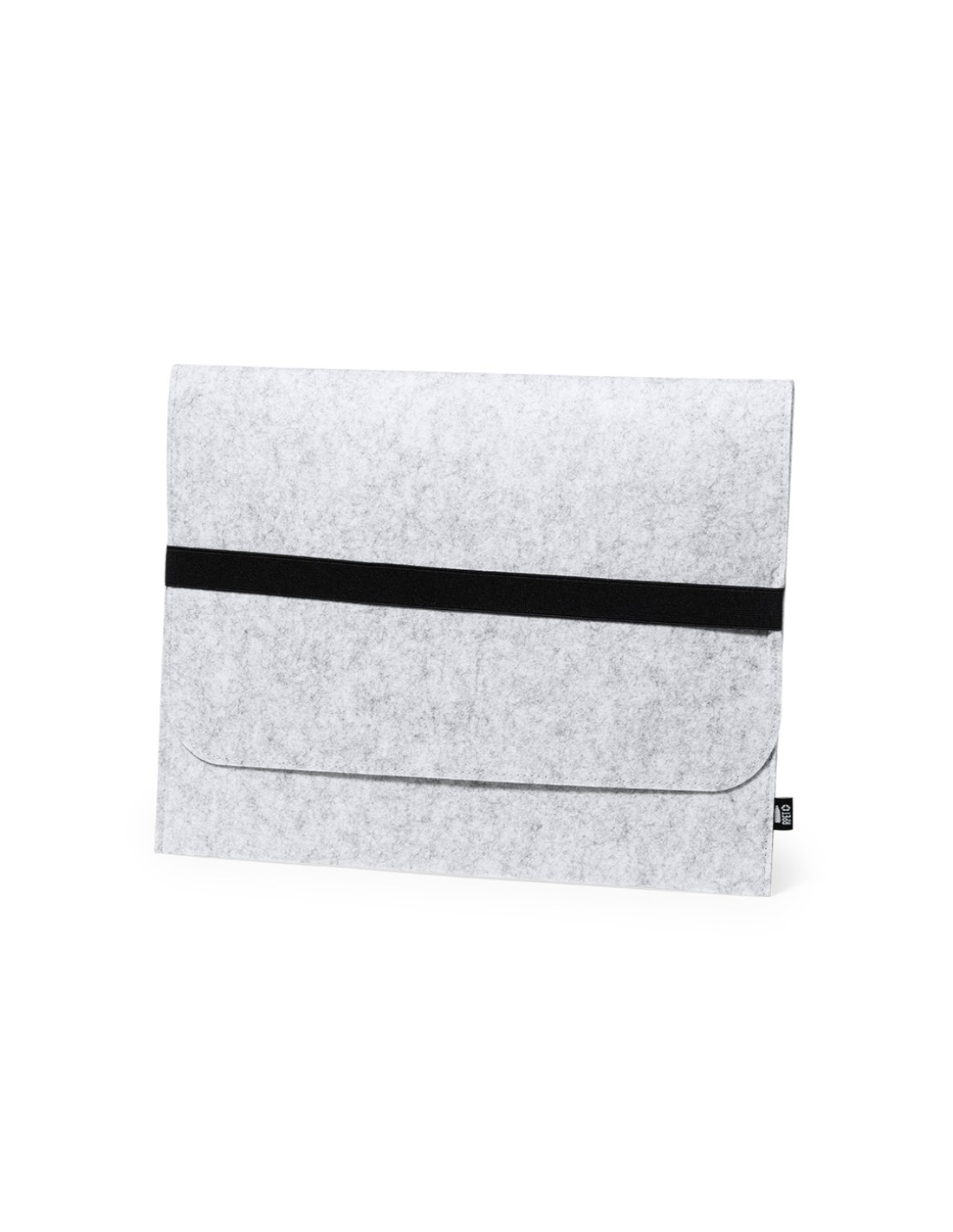 Funda para ordenador portátil en resistente fieltro RPET reciclado. Solapa con cierre de goma elástica y bolsillo frontal, con distintivo RPET en...