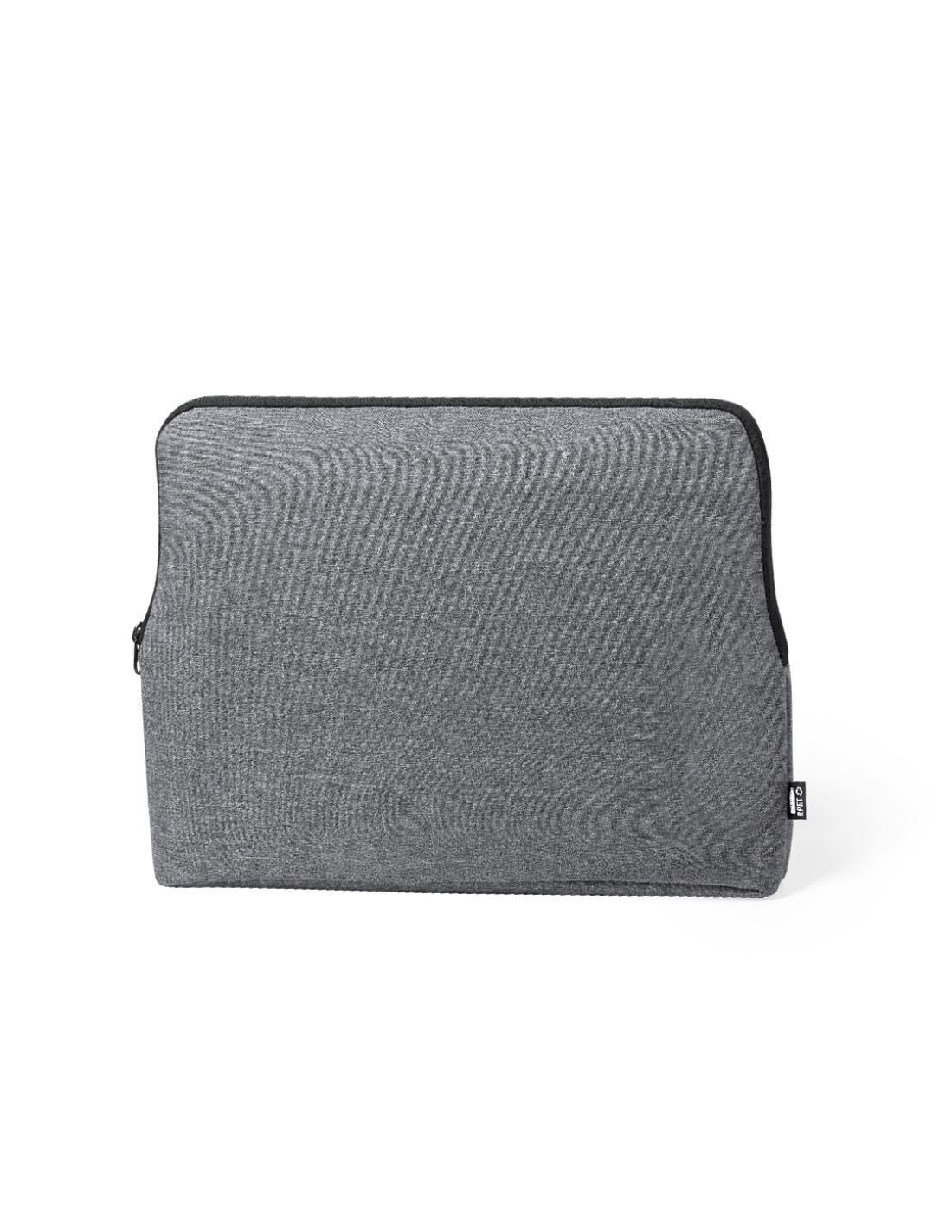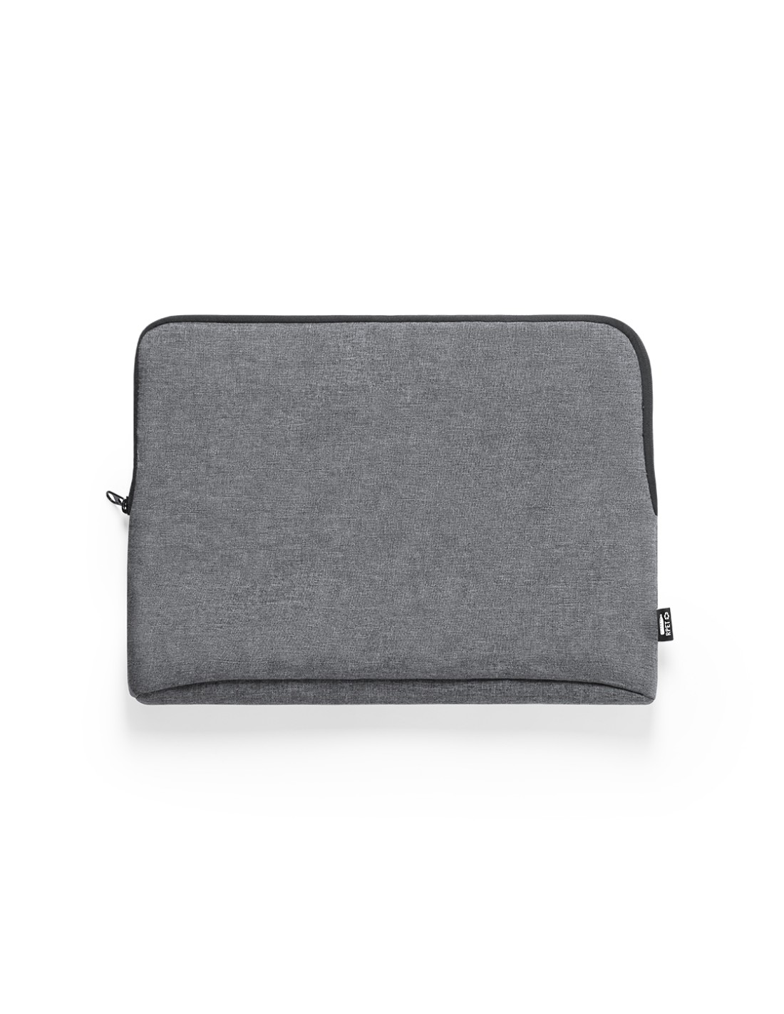 Funda para ordenador portátil de línea nature y en resistente 600D RPET efecto melange, elaborado a partir de plástico reciclado para así fomentar la reutilización de residuos plásticos y contribuir a la sostenibilidad del planeta. Detalles en negro y compartimento principal con cierre de cremallera. Interior totalmente acolchado y forrado, con distintivo RPET en etiqueta exterior.