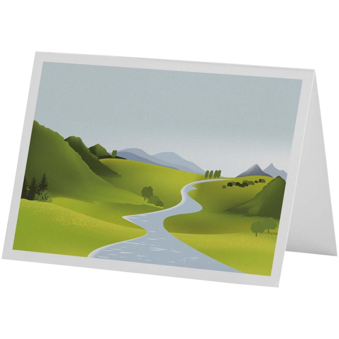 La tarjeta de felicitación A6 está fabricada en cartulina de 320 g/m² de alta calidad y se puede imprimir con tus propios diseños tanto en el exterior como en el interior. Mejora tus diseños con estampación en caliente y con relieve para dar una nueva dimensión a tus tarjetas de felicitación. Incluye por defecto un sobre blanco. Tamaño de la tarjeta: 105 x 148 mm.