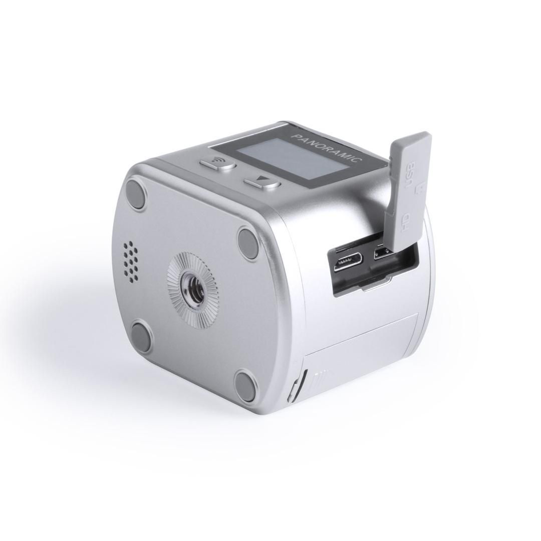 Cámara deportiva 360° de alta calidad de captura de vídeo HD 2448p, de diseño compacto y resistente, especialmente diseñada para uso intensivo. Incluye carcasa sumergible y multitud de accesorios para ajuste en casco, manillar o cinturón, así como correas ajustables para cabeza y torso. La versatilidad y resistencia de esta cámara deportiva la convierten en el gadget perfecto para capturar, con una calidad excepcional, cualquier actividad deportiva o de ocio en 360°. Con función Wi-fi, cámara de fotos Full HD 1080p, ranura para tarjetas micro USB de hasta 64 GB de capacidad, pantalla LCD de 0,96 pulgadas, sistema multilenguaje, y recargable mediante cable mini USB -incluido-. Presentada en atractiva caja de diseño.