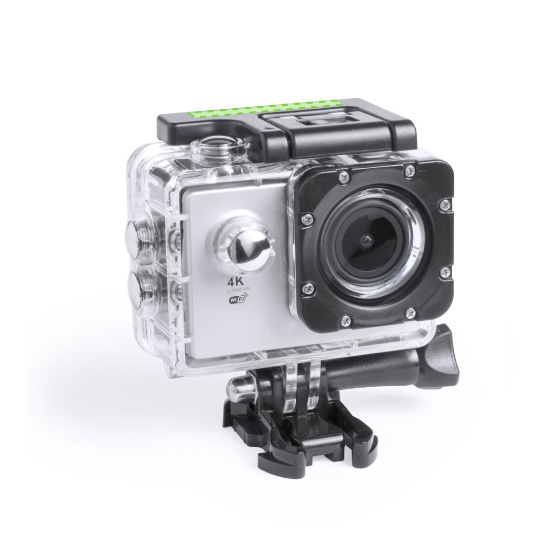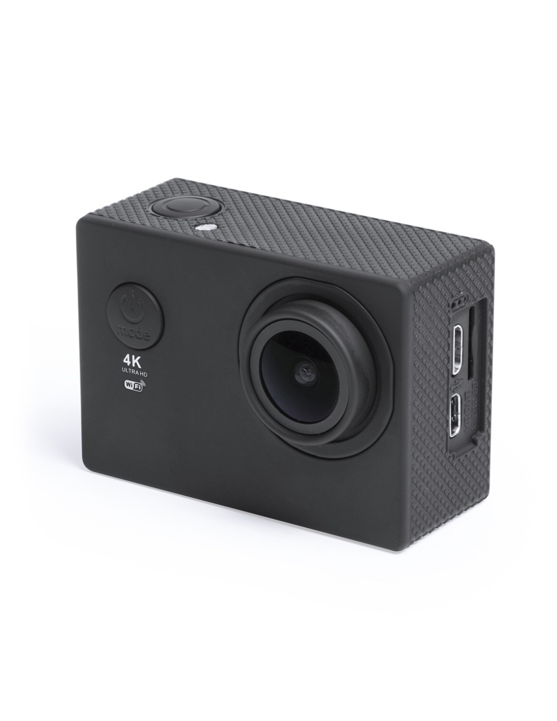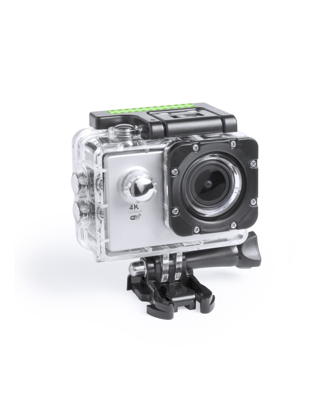 Cámara deportiva de alta calidad de captura de vídeo HD 4K, de diseño compacto y resistente, especialmente diseñada para uso intensivo. Incluye carcasa sumergible hasta 30m de profundidad y multitud de accesorios para ajuste en casco, manillar o cinturón, así como correas ajustables para cabeza y torso o un adaptador giratorio de 360º. La versatilidad y resistencia de esta cámara deportiva la convierten en el gadget perfecto para capturar, con una calidad excepcional, cualquier actividad deportiva. Con función cámara de fotos Full HD 1080p, ranura para tarjetas micro SD de hasta 64 GB de capacidad, pantalla LCD de 2 pulgadas, sistema multilenguaje, y recargable mediante cable mini USB -incluido-. Presentada en atractiva caja de diseño.