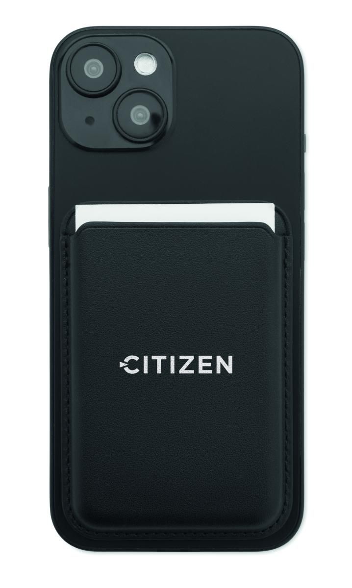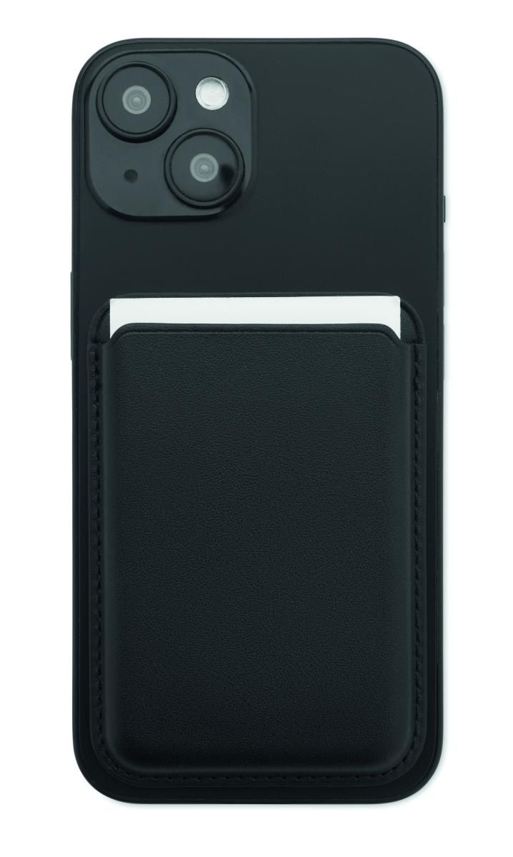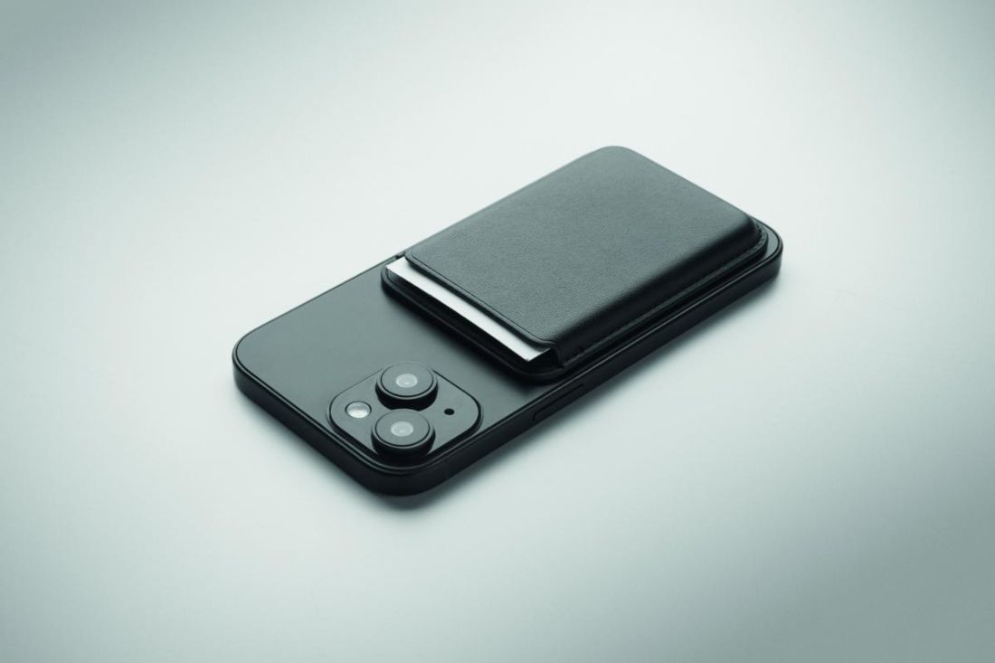 Tarjetero magnético de poli piel de PU para tarjetas de crédito (para 3 tarjetas) con función de soporte de teléfono. Incluye una anilla metálica adicional.