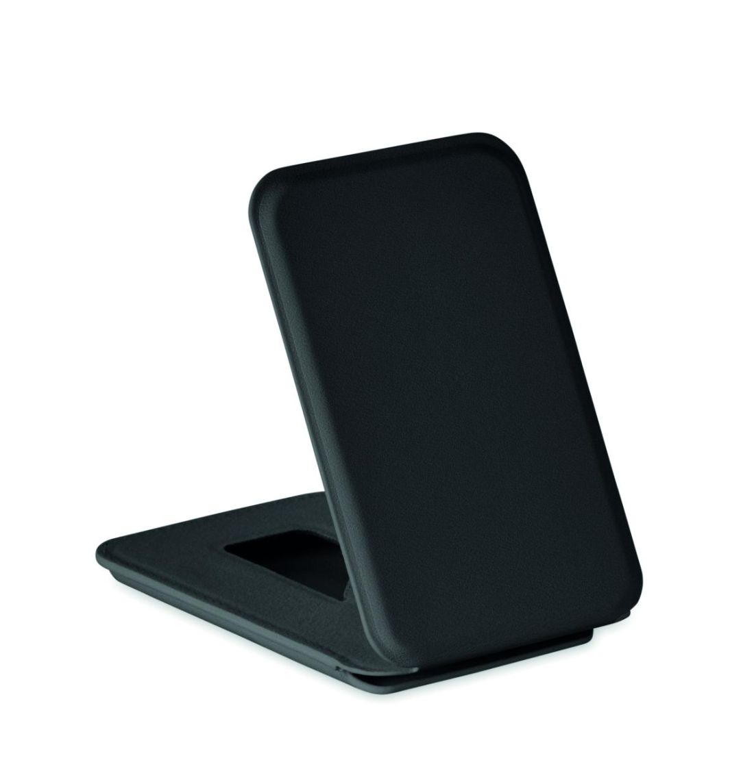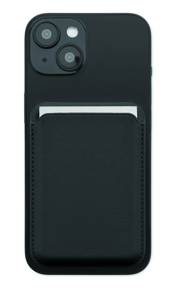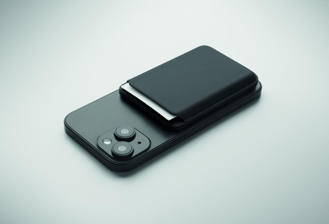 Tarjetero magnético de polipiel de PU para tarjetas de crédito (para 3 tarjetas) con función de soporte. Incluye una anilla metálica adicional.