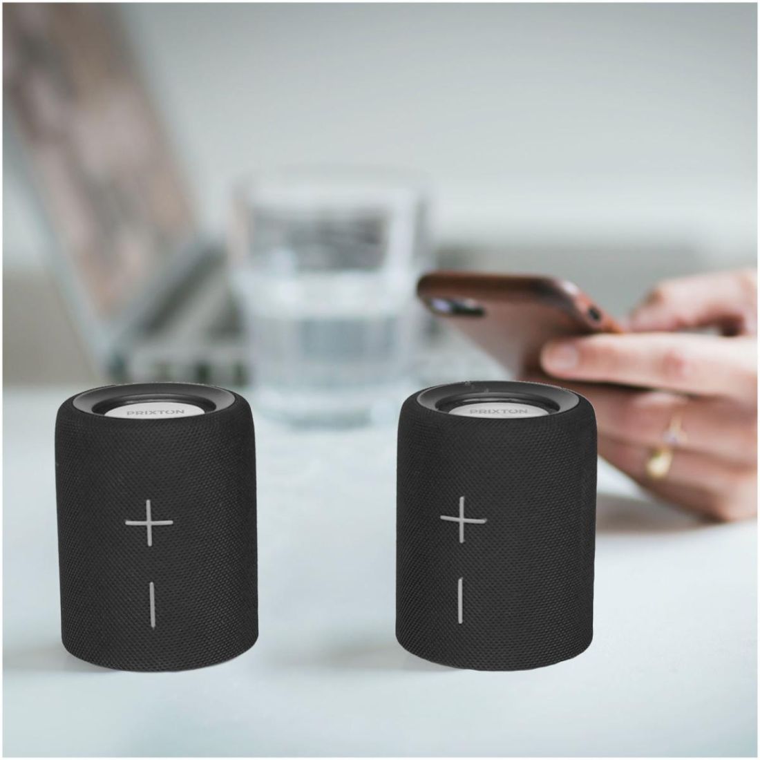 Altavoz Bluetooth® de 20 W resistente a las salpicaduras IPX6 que se puede desmontar en dos altavoces independientes. Cuenta con dos baterías de 2000 mAh que se recargan por completo en 2-3 horas y ofrecen un tiempo de reproducción de 6-8 horas. Dimensiones 23,5 x 8,7 x 8,7 cm. Peso 840 g. Distancia máxima de conexión 10 metros.